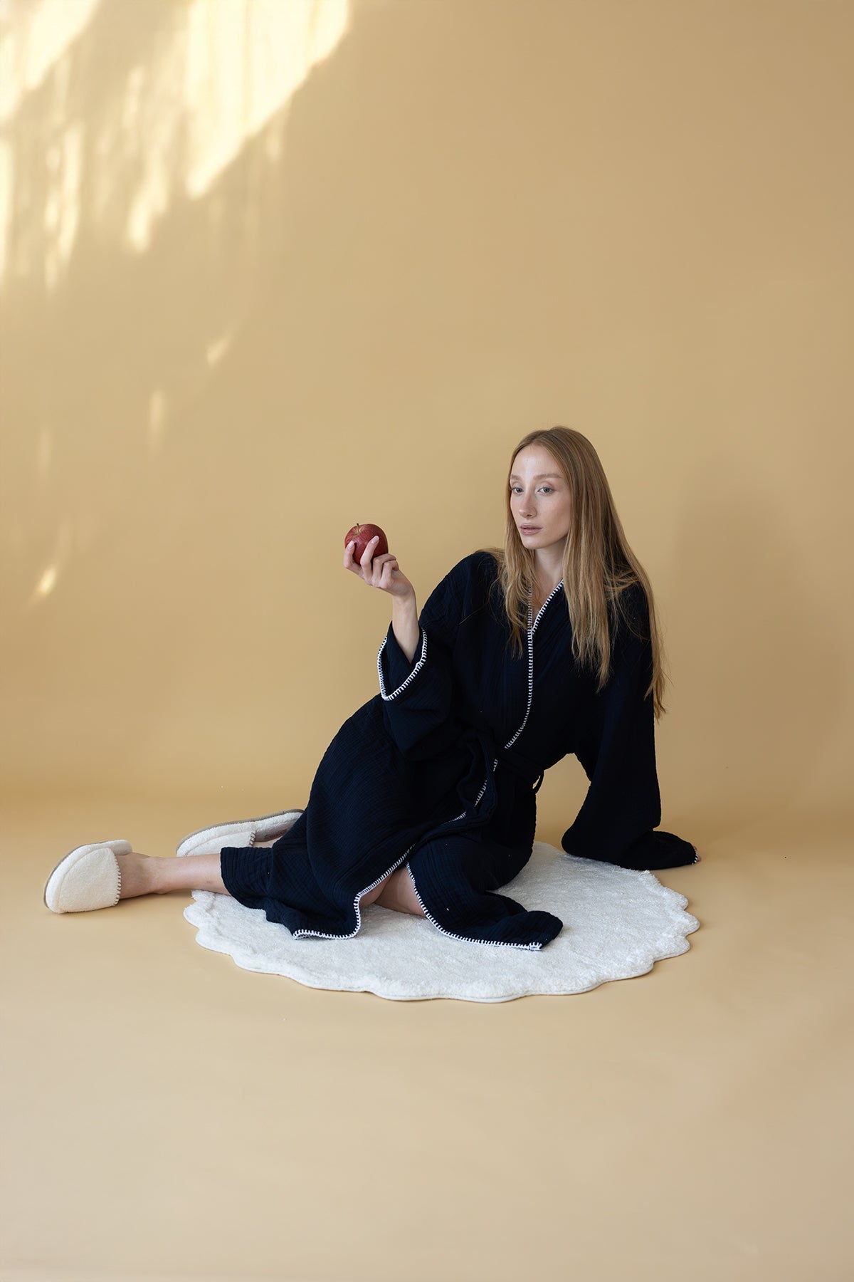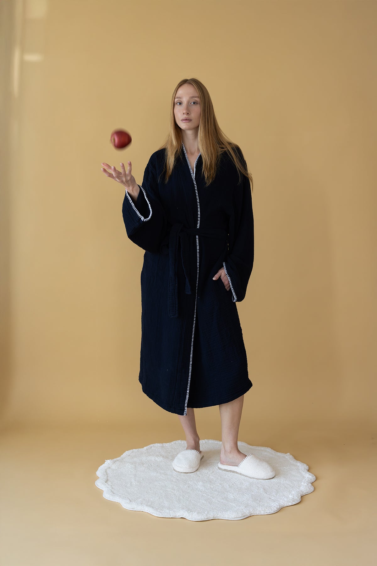 Loom 4 Katlı çoban Dikşili Kadın Bornoz Lacivert