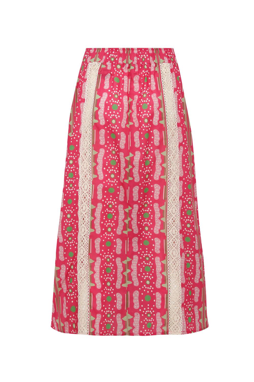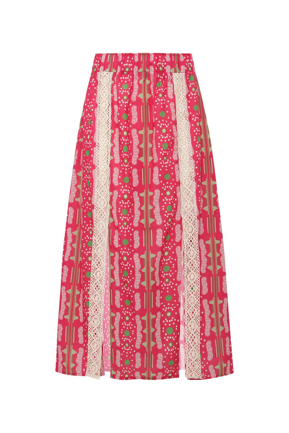 Pembe Bulut Desenli Kopanaki Detaylı Önden Yırtmaçlı Etek