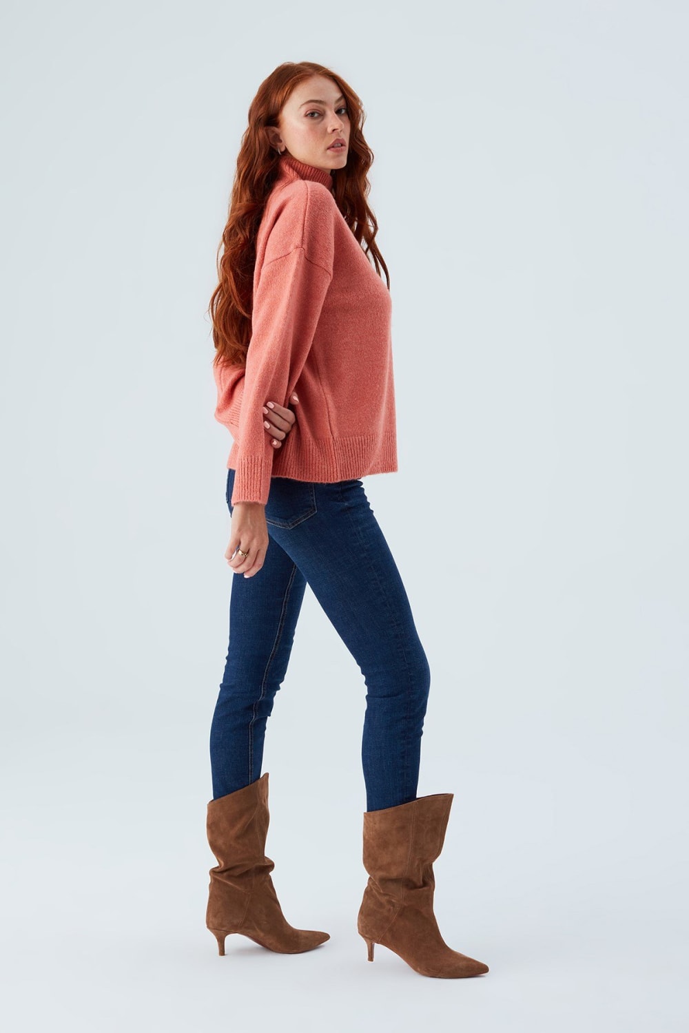 Macumba Pullover Turtleneck Soft Textured Women's Knitwear Sweater Light Pink