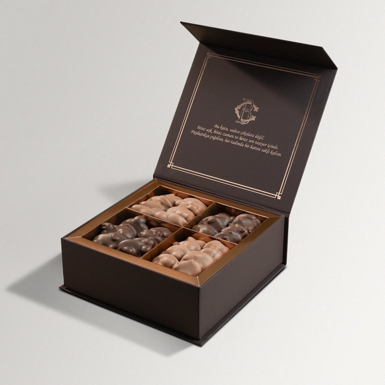 İçindekiler : Sütlü Çikolatalı Belçika Bisküvili, Sütlü Çikolatalı Pirinç Patlaklı, Sütlü Çikolatalı Fıstıklı, Sütlü Çikolatalı Bademli, Bitter Çikolatalı Fındıklı, Bitter Çikolatalı Kuru Üzümlü, Bitter Çikolatalı Portakallı