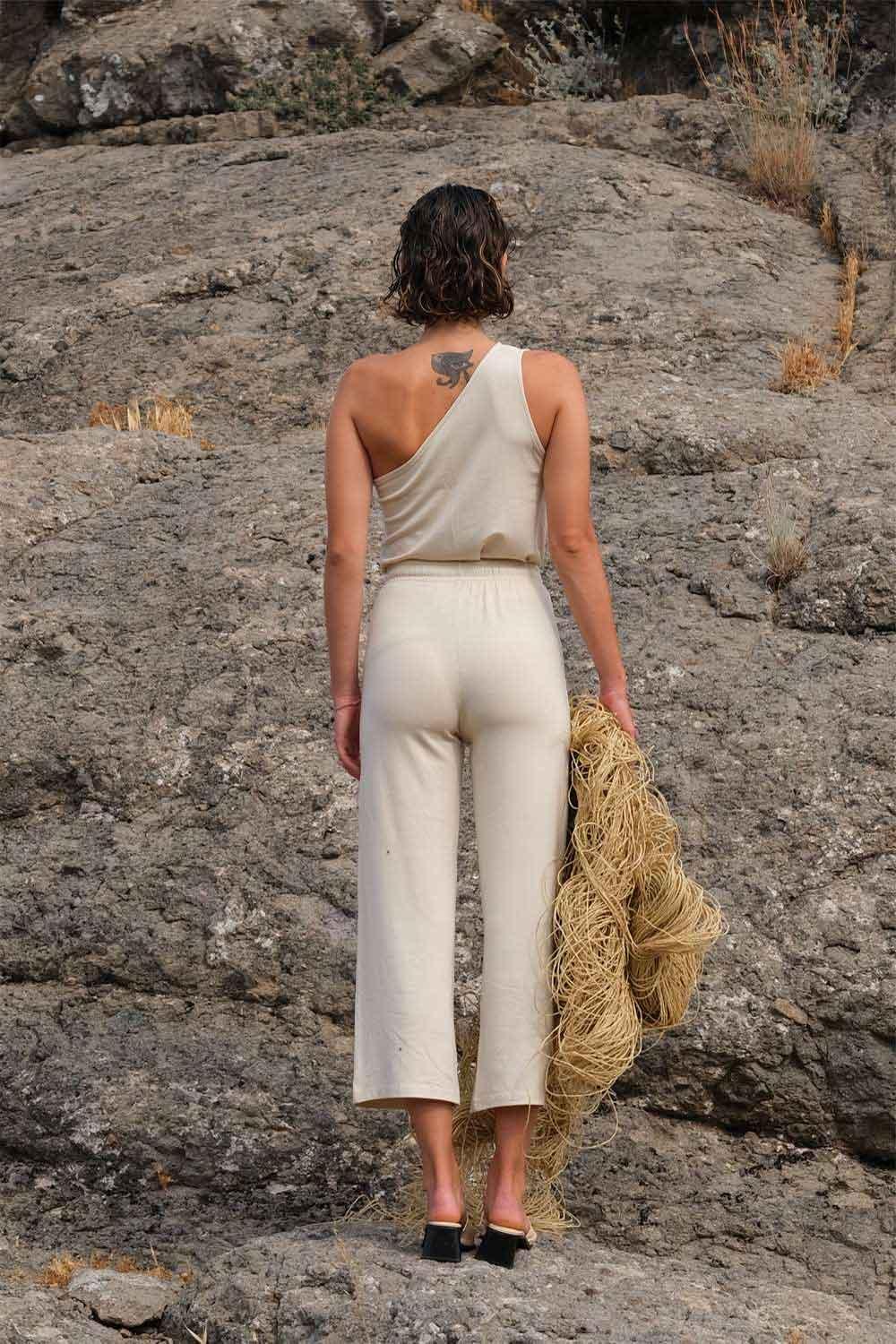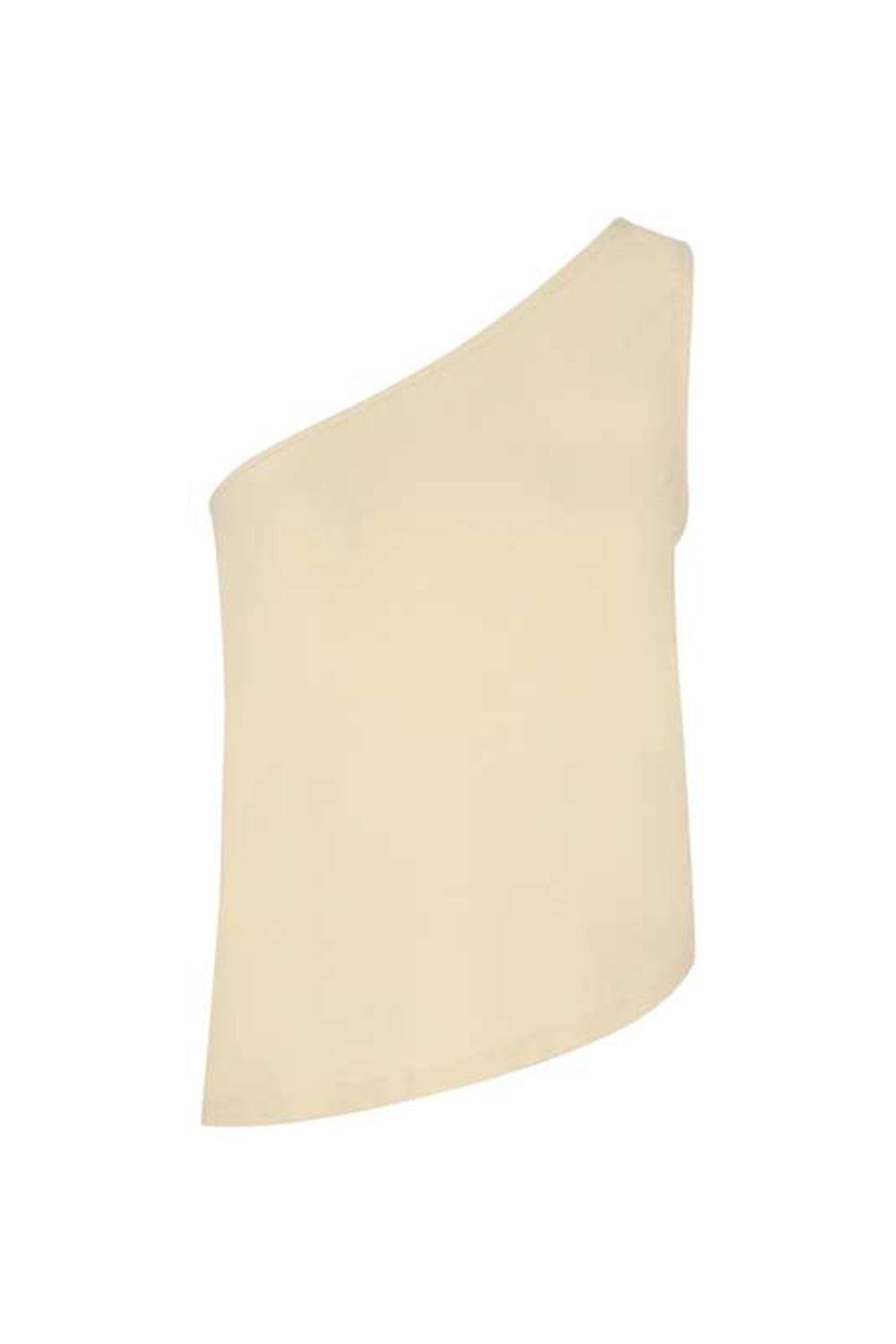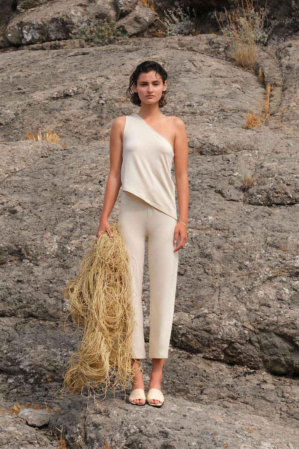 Lazy Top, whose sophisticated cut allows for shoulder decollete by going through one sleeve, is a wear-and-go alternative that can be preferred on summer evenings. With its flowing vortex viscose fabric, it floats on the skin without weighing it down.