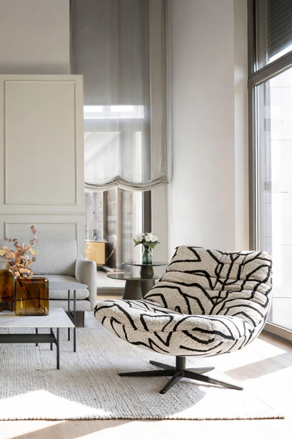 Livingstore Albert Berjer Koltuk, modern iç mekânlarda konfor ve şık tasarımı bir araya getiren, zarif bir döner koltuktur. Organik kol formu ve devam eden sırt çizgisi ile ergonomik destek sağlarken, döner örümcek metal ayak sayesinde oturma alanında kolay hareket kabiliyeti sunar.