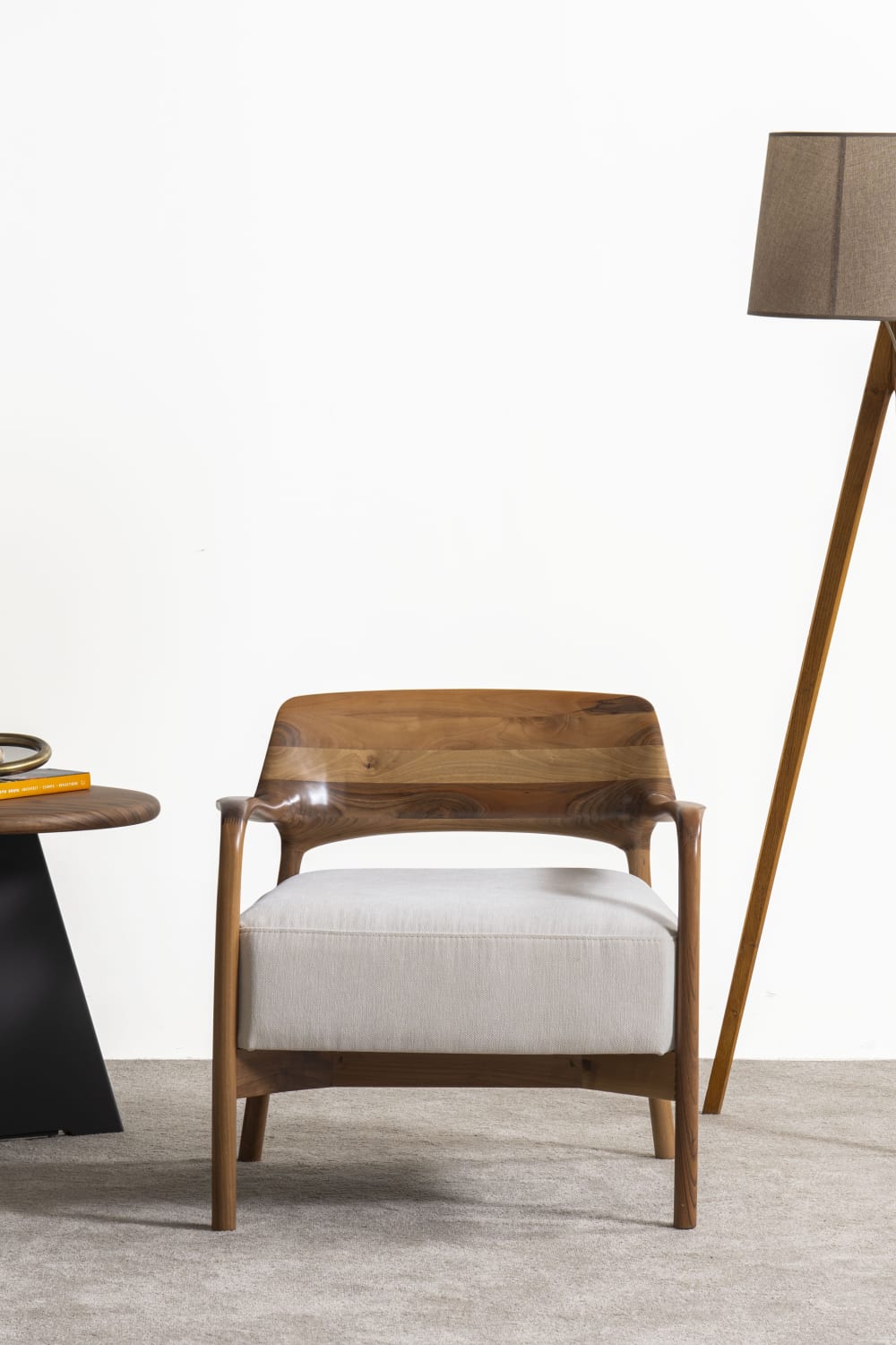 Via, doğadan gelen saf dokuyu yaşatan bir berjer. Akışkan formu, ağaç dokusunun zarafetini oturma alanına taşır. Sırt ve kollardaki boşluklar, her detaya nefes aldırırken, geniş ve güçlü oturum alanı sağlam bir güven hissi sunar. Her bakışta sakinliği, her dokunuşta doğallığı hissettiren Via, odanın merkezinde bir durak noktasıdır.