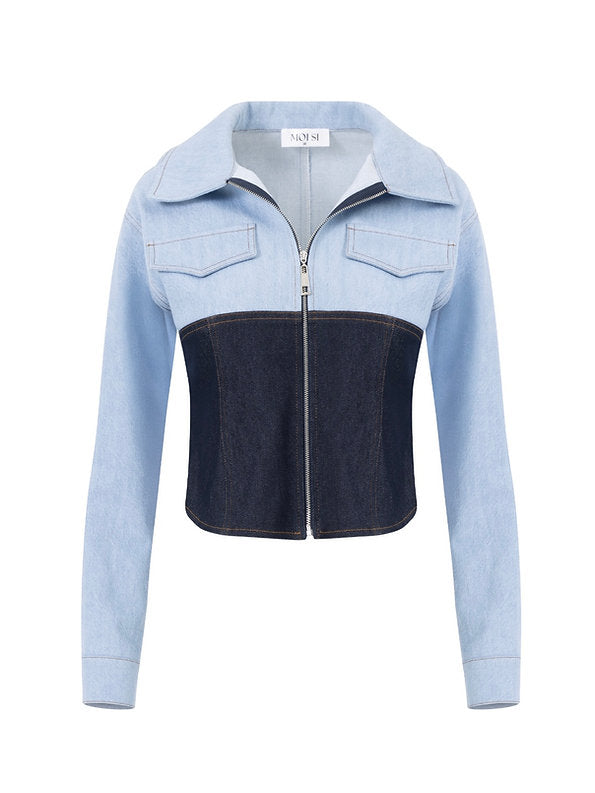 This denim jacket, with a front zip closure, flap pocket details, stitching accents, and dual-color design, is a stylish piece that highlights your unique style. Its modern cut and eye-catching details add a sophisticated touch to any outfit. The dual-color structure gives the jacket a dynamic and distinctive look. Suitable for both everyday wear and special occasions, this jacket offers a perfect blend of elegance and comfort. With its exceptional design, it will make a statement in your wardrobe.