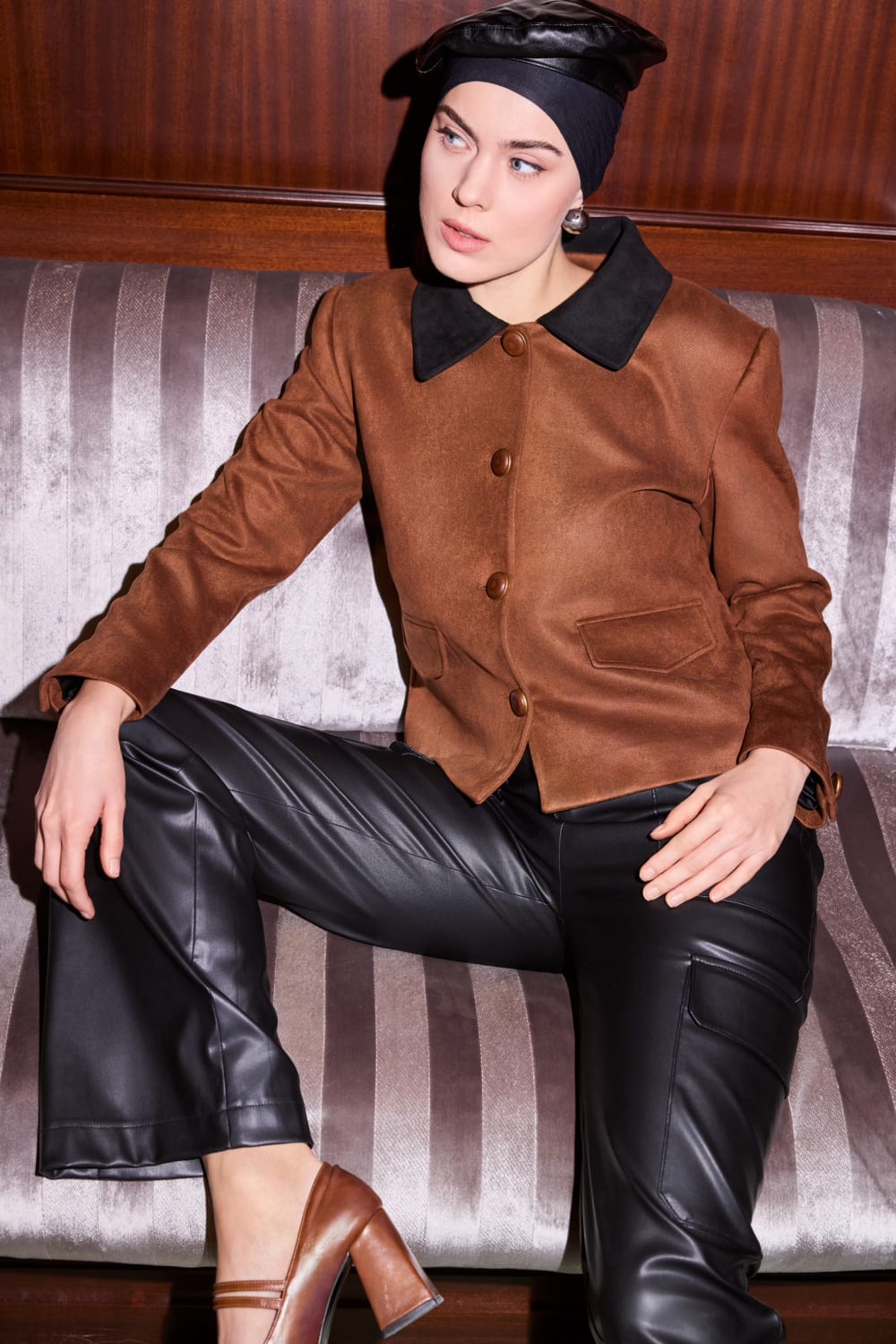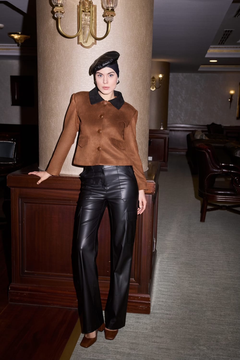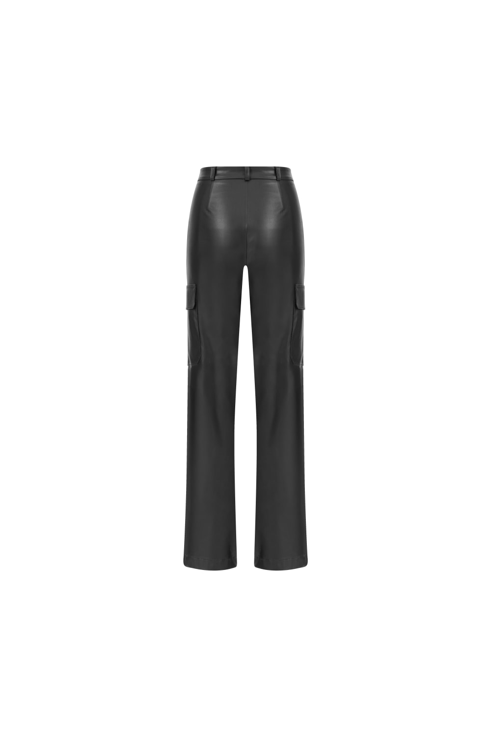 This belt closure with hook fastening, cargo-pocket leather pants stands out with its unique design. The cargo pockets offer both style and comfort, complementing your modern look. With its bold and original design, this pant adds a sophisticated touch to any outfit, highlighting your style and personality.