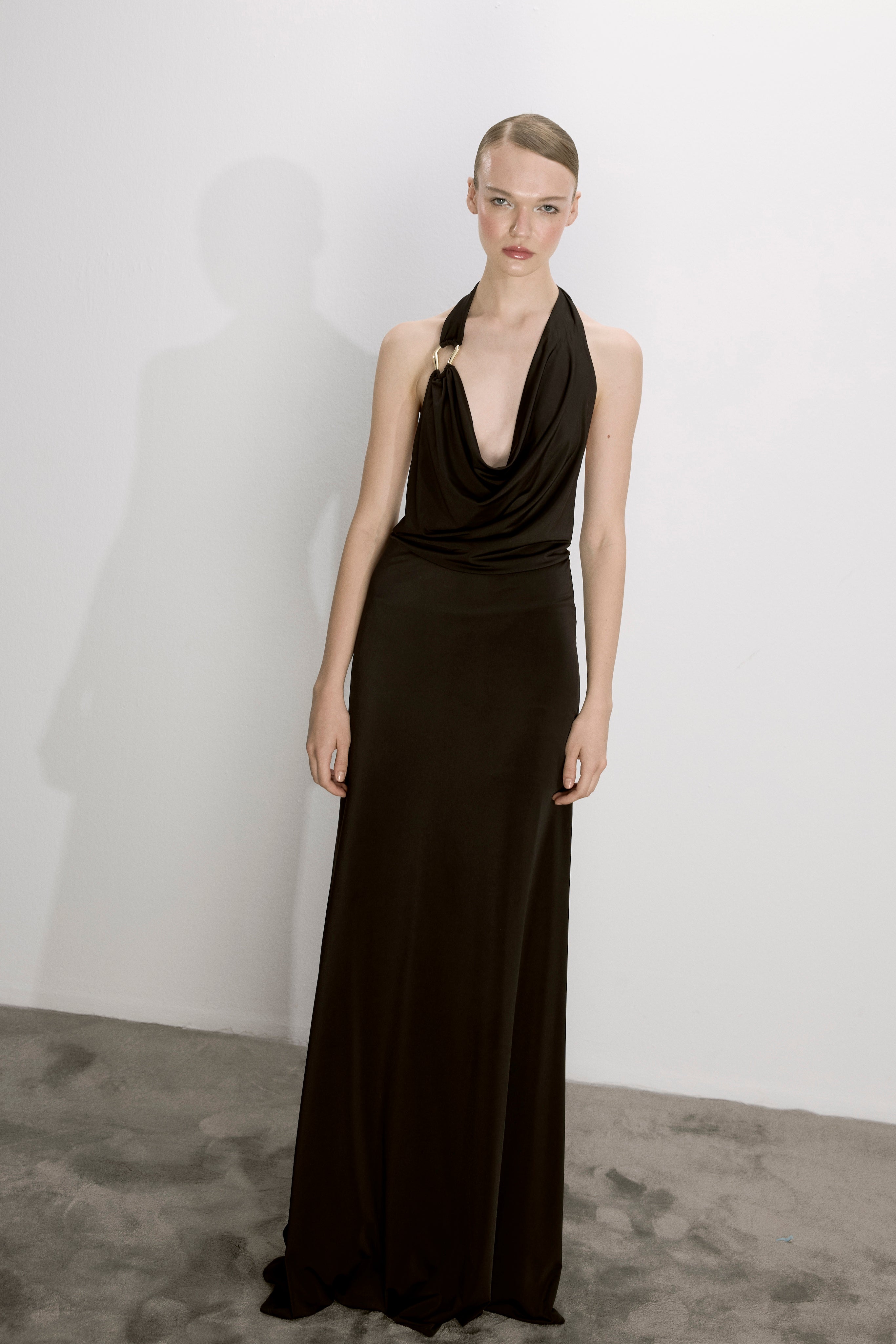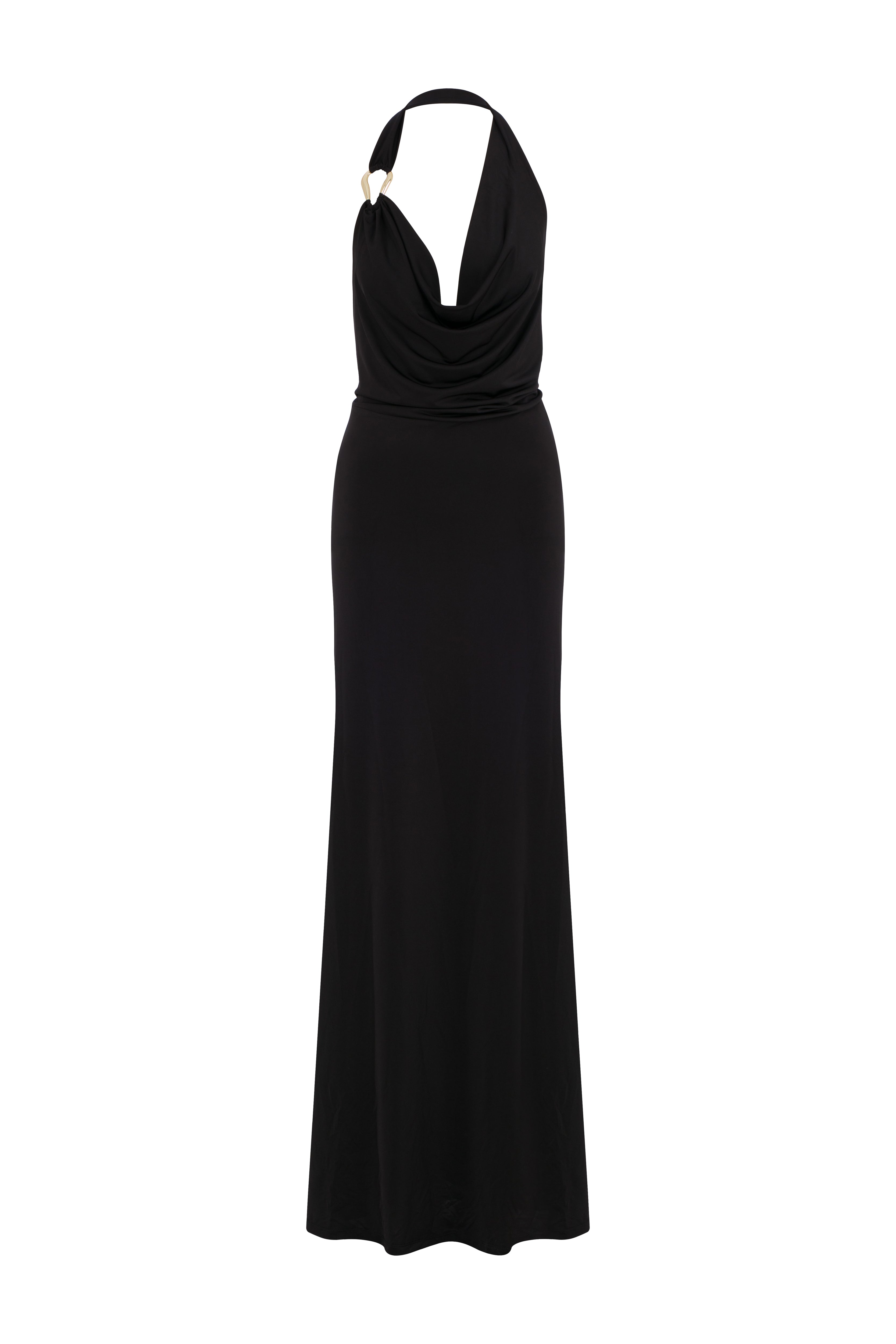 Dakota Uzun Jarse Elbise, dekolte kısmındaki ince altın aksesuarı ile zarif bir görünüme sahiptir. Jarse kumaşı sayesinde rahatlık sağlar.