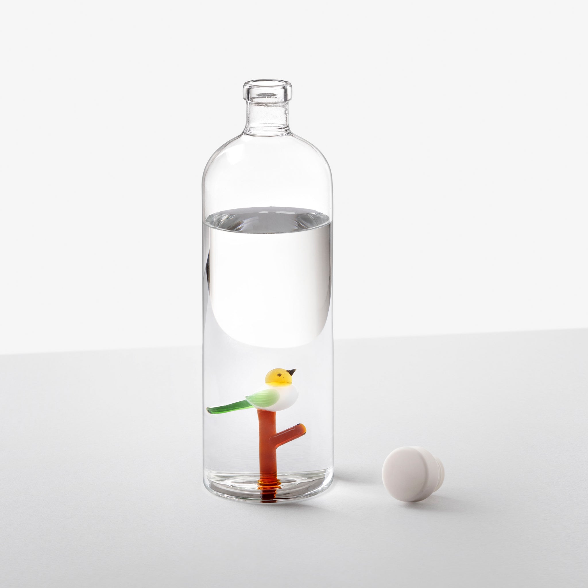 Estetik ve dayanıklılığı bir araya getiren bu borosilikat cam şişe, zarif kuş figürüyle dekoratif bir dokunuş sunar. Tıpalı yapısı sayesinde hem işlevsel hem de şık bir kullanım sağlar.