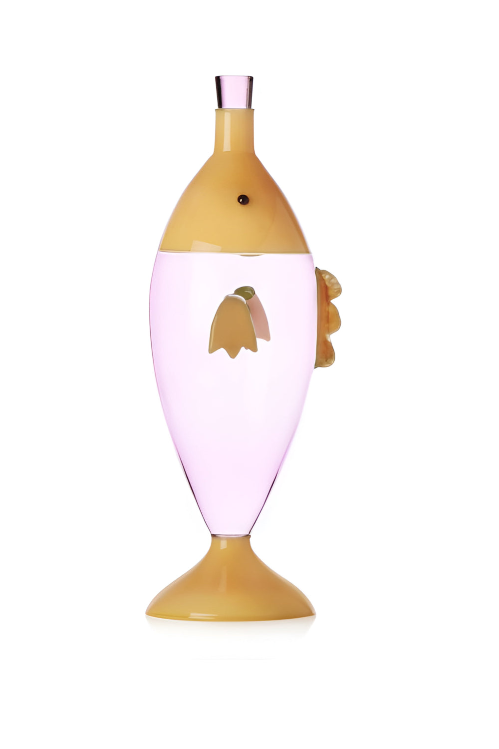 Marine Garden koleksiyonundan pembe balık formunda tıpalı cam şişe.