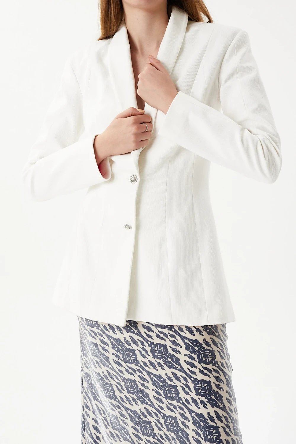 Fitted kalıp, önden tek düğmeli, astarlı, fitilli kadife bayan ceket.