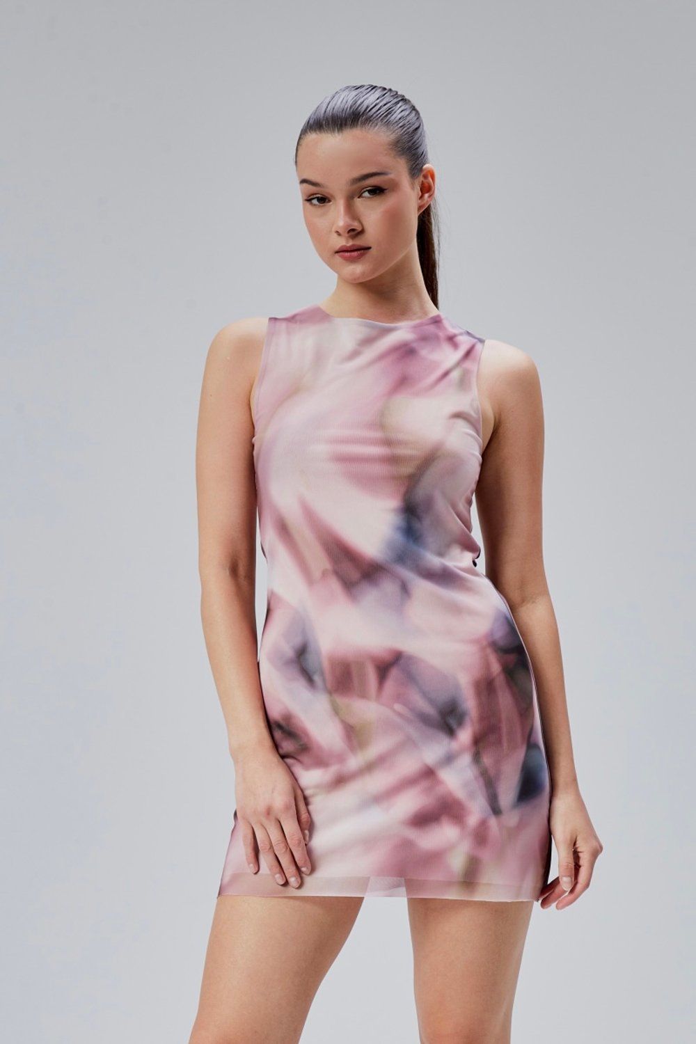 Desenli Tül Mini Elbise