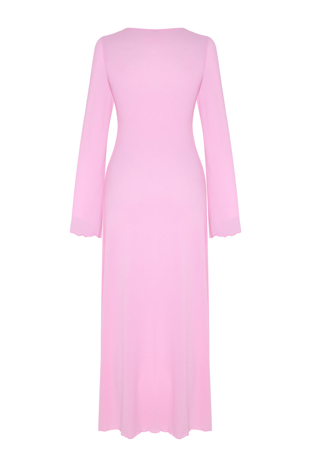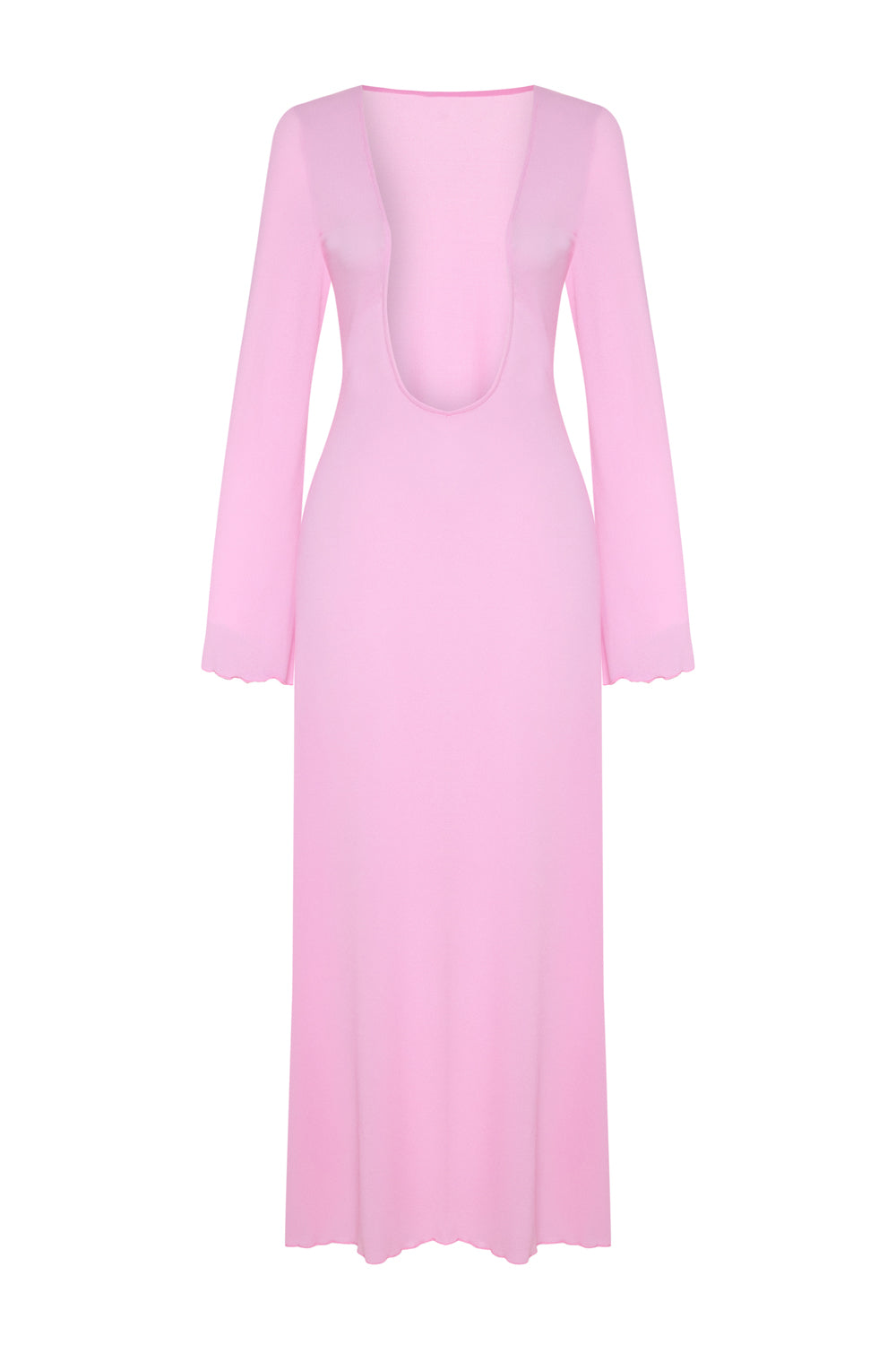Sugar Bloom Sırtı Açık Pembe Maxi Elbise