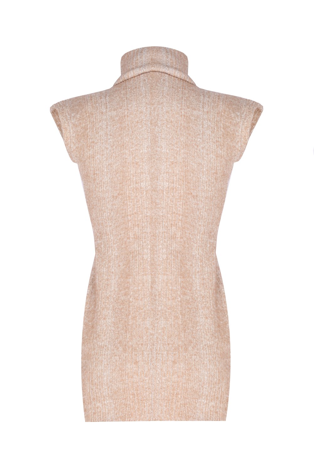 Uzun Balıkçı Yaka Ayarlanabilir Büzgü Yırtmaç Ve Gül Detaylı Vatkalı Triko Mini Elbise
