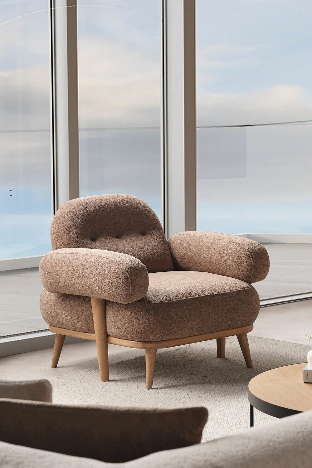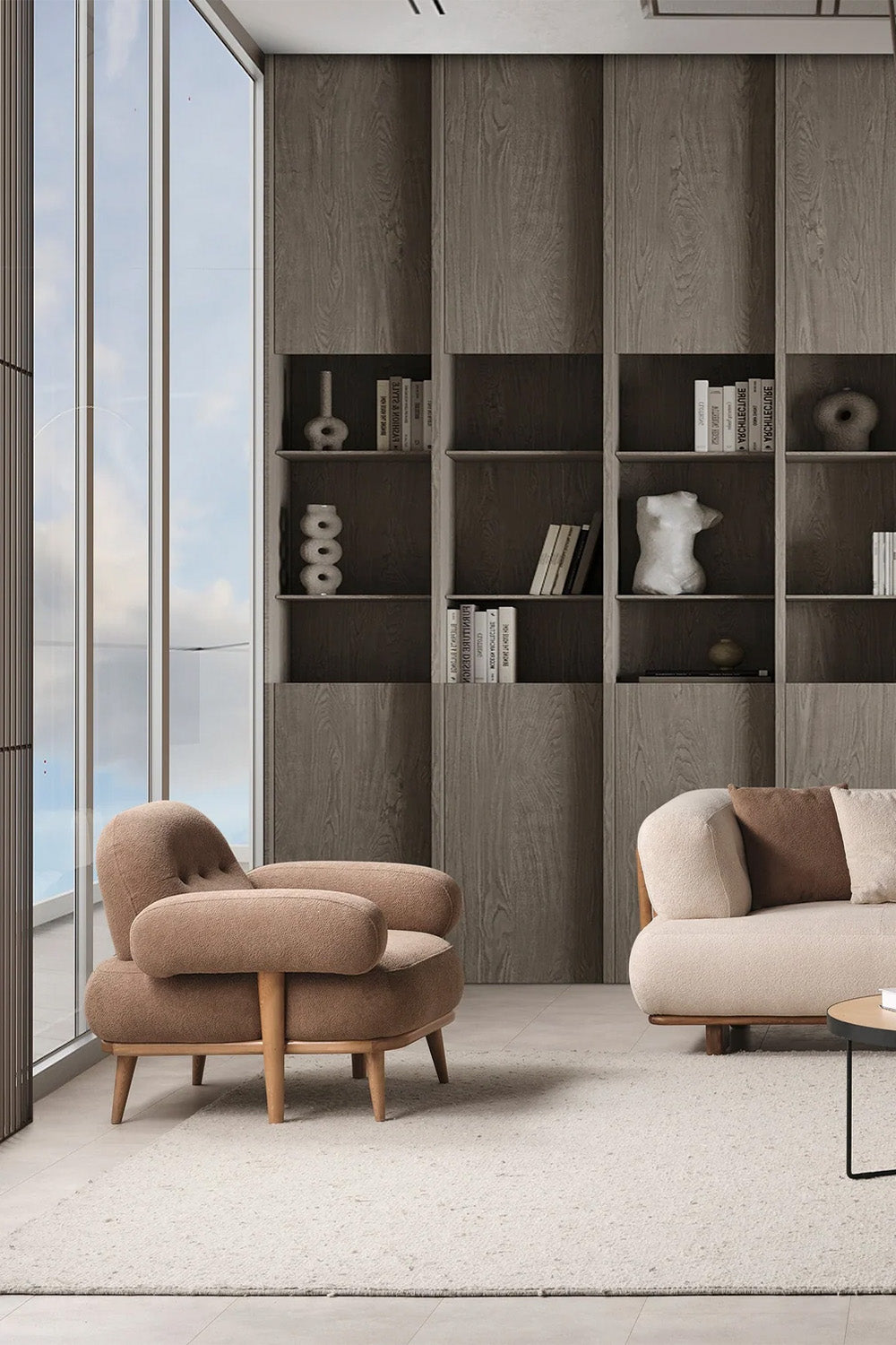- Doğal Ahşap Detaylar: Koltuğun iskeletinde yer alan ahşap detaylar, odanıza doğal bir sıcaklık ve zarafet katıyor. Ahşabın sıcak tonlarıyla tasarlanan detaylar, Anka'yı benzersiz kılıyor.