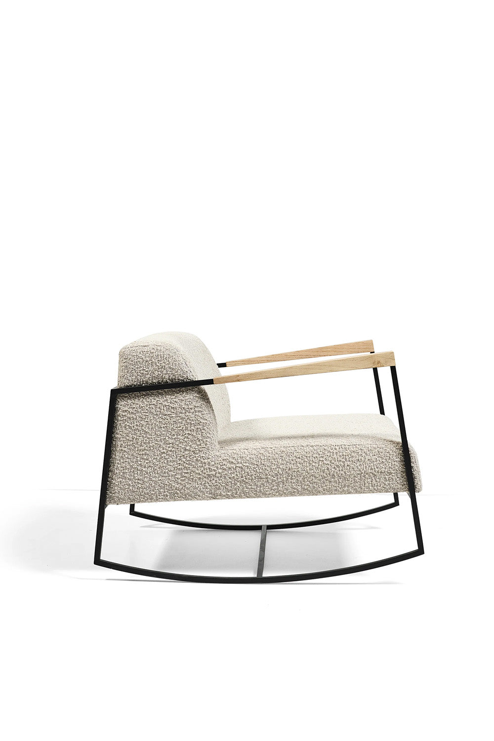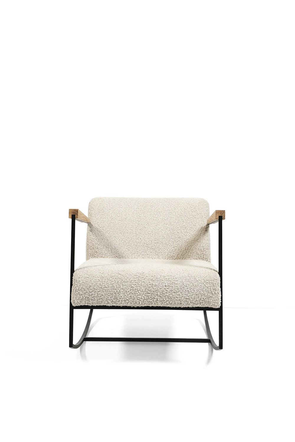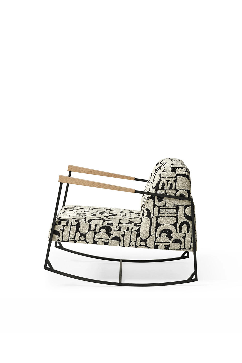 Metal çerçevesi, hafiflik ve sağlamlığı dengelerken, geometrik desenleriyle dikkat çeken kumaşı karakteristik bir dokunuş katıyor. Gereksiz detaylardan kaçınılmış tasarımı, her ortamda estetik bir denge kurarken, konforu da ön planda tutuyor. Minimalizmin getirdiği huzuru hissetmek için tasarlanan bu berjer, zamansız bir şıklığın temsilcisi.