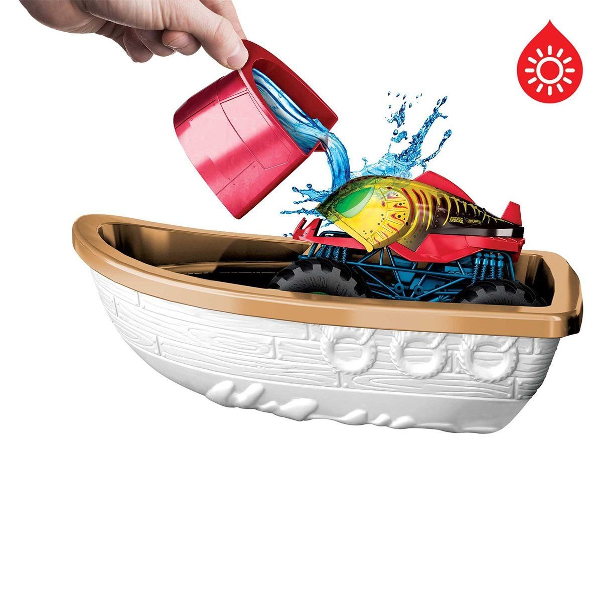 Hot Wheels Monster Trucks Track Hungry Timsah Saldırı Seti, büyük heyecanlar için renk değiştiren sürprizler dalgası sunuyor!Color Shifters Piran-ahhh arabasını fırlatın ve Alligator'ın buzlu suyla dolu ağzına indiğinde, Monster Trucks'a yepyeni bir görünüm veren bir renk değişikliği meydana gelir. Bir kez daha rengini değiştirmek için ılık suyla ıslatılabileceği tekneye göndermek için tekrar dökün!Değişiklikleri tekrarlamak için stuntları tekrarlayın! Tekne kabı ve timsah ağız kabı çıkarılabilir ve dökülmeleri önler. Taşıtlar oyun seti ile çocuklar çok eğlenecek!Paket ölçüsü: 20 x 63 x 21,8 cm