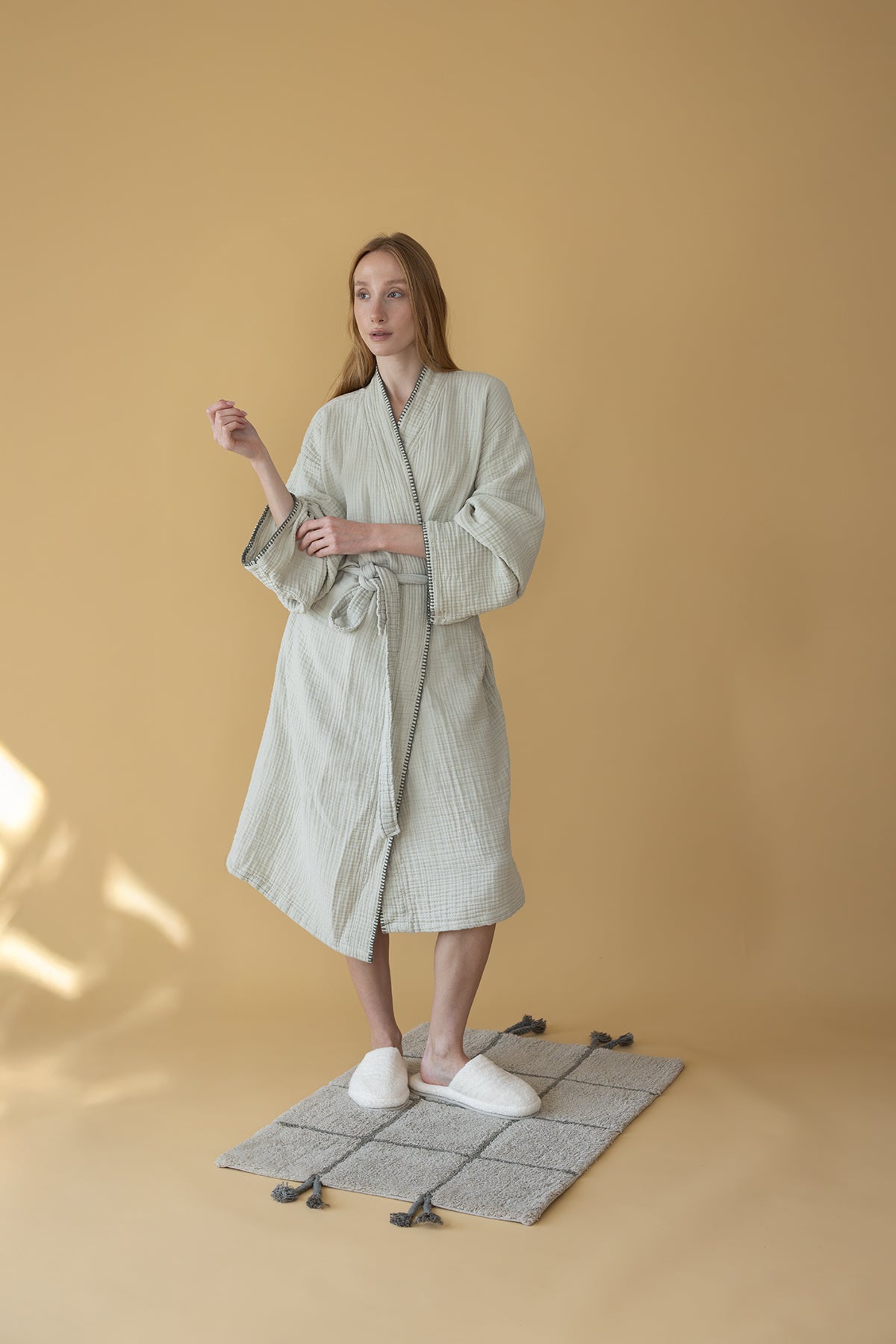 Elani paspas, kare desenli modern tasarımı ve püskül detaylarıyla banyonuza sade ama şık bir dokunuş kazandırır. %100 pamuktan üretilen doğal dokusu, her adımda yumuşaklık sunarken suyu hızla emer ve kolayca kurur. Minimalist formuyla her dekorasyon stiline uyum sağlayan Elani, banyonuzda hem konforu hem de zamansız bir estetiği bir arada yaşatır.