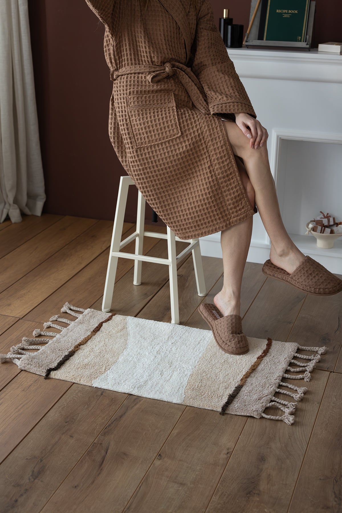 Doğal tonların uyumu ve zarif püskül detaylarıyla Marble banyo paspası, banyonuza sıcak ve şık bir dokunuş katar. Yumuşak dokusu her adımda konfor sunarken, püskül kenarları mekâna bohem bir zarafet getirir.