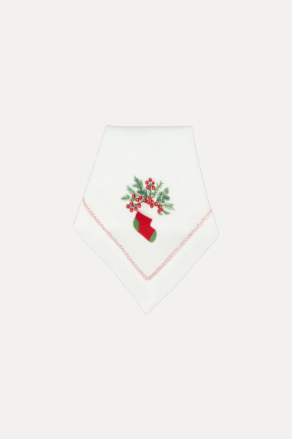 Christmas Çorap Nakışlı Peçete – Beyaz / Kırmızı & Yeşil