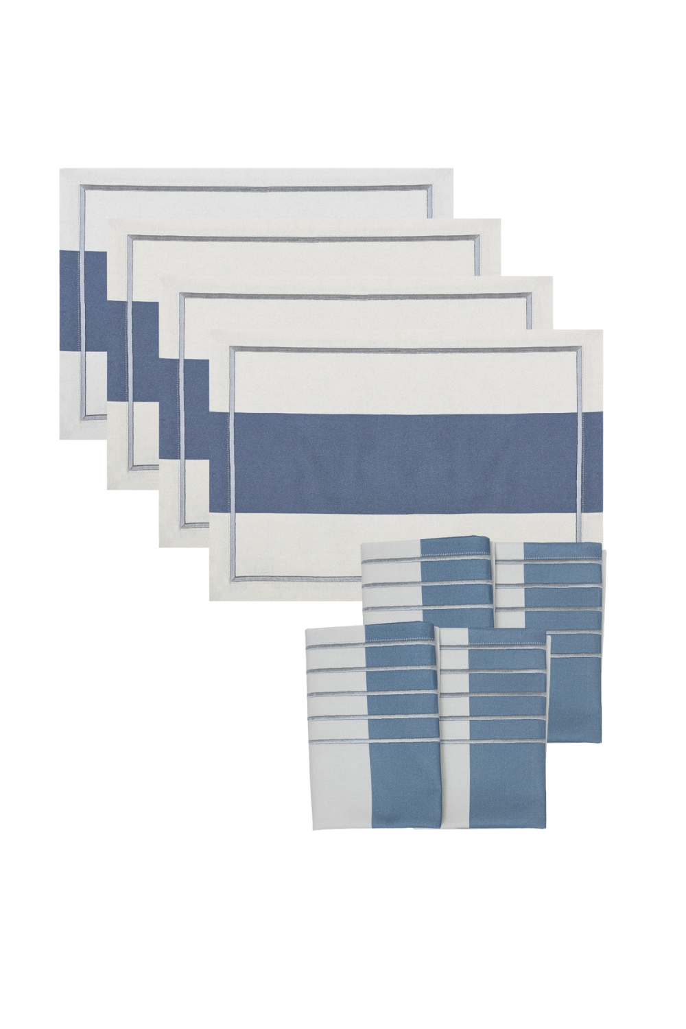 Maya Royal Mavi Gri Pamuklu 4'lü Amerikan Servis Seti Ve Moon Peçete Seti