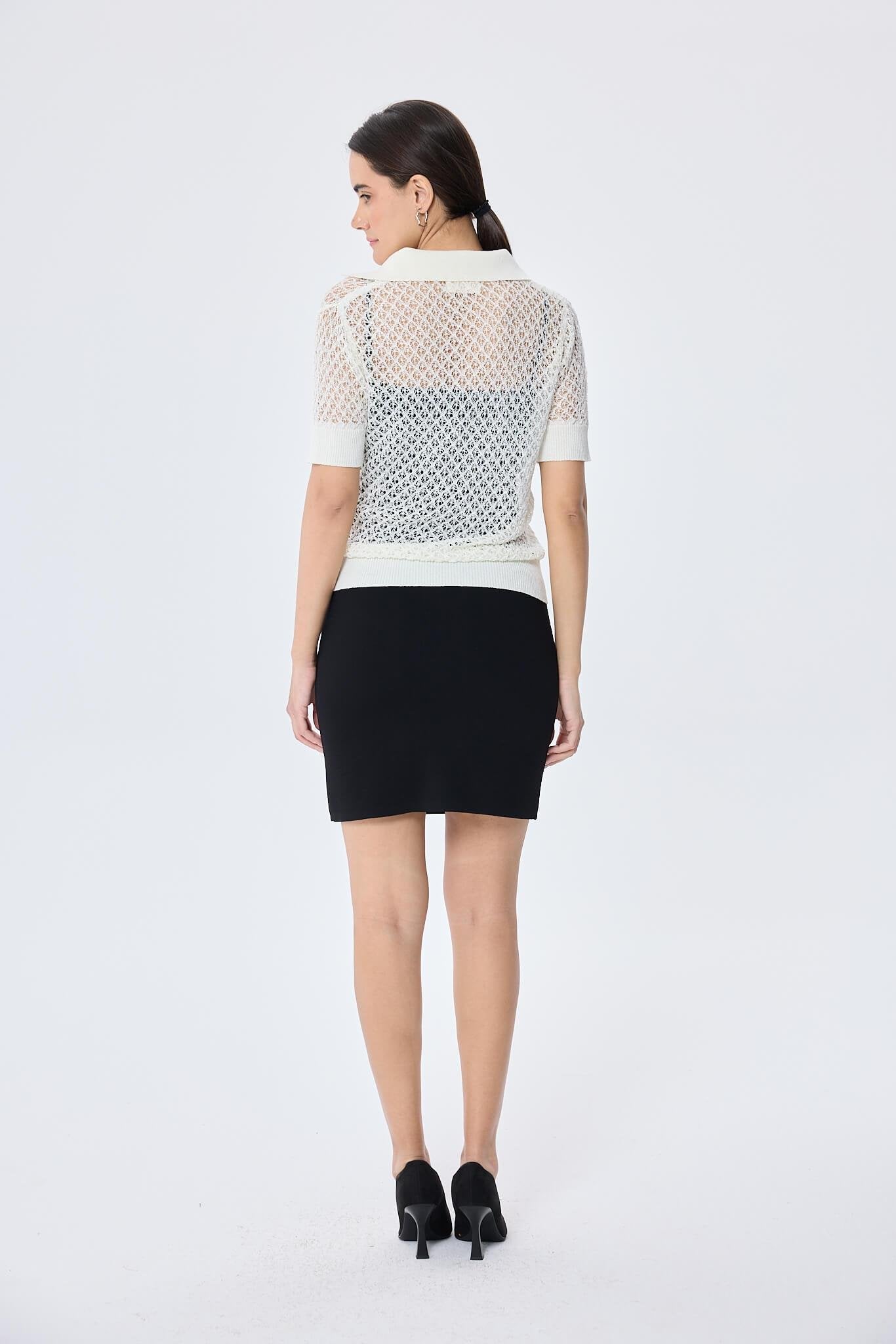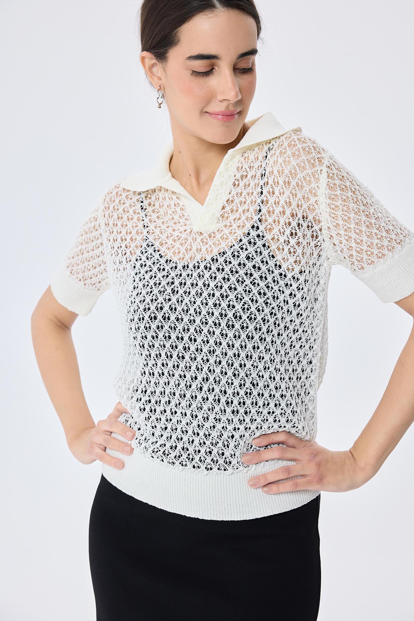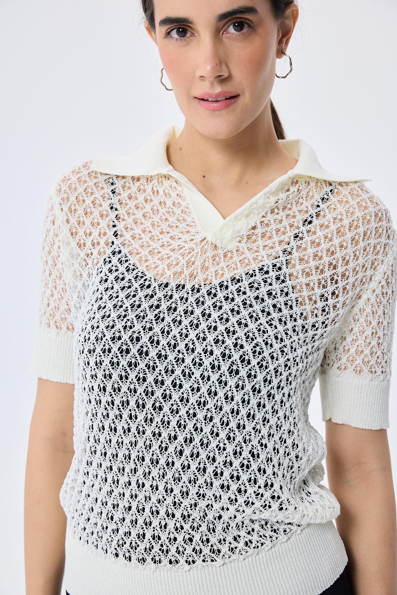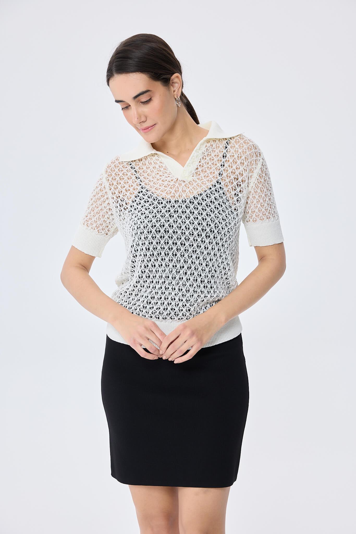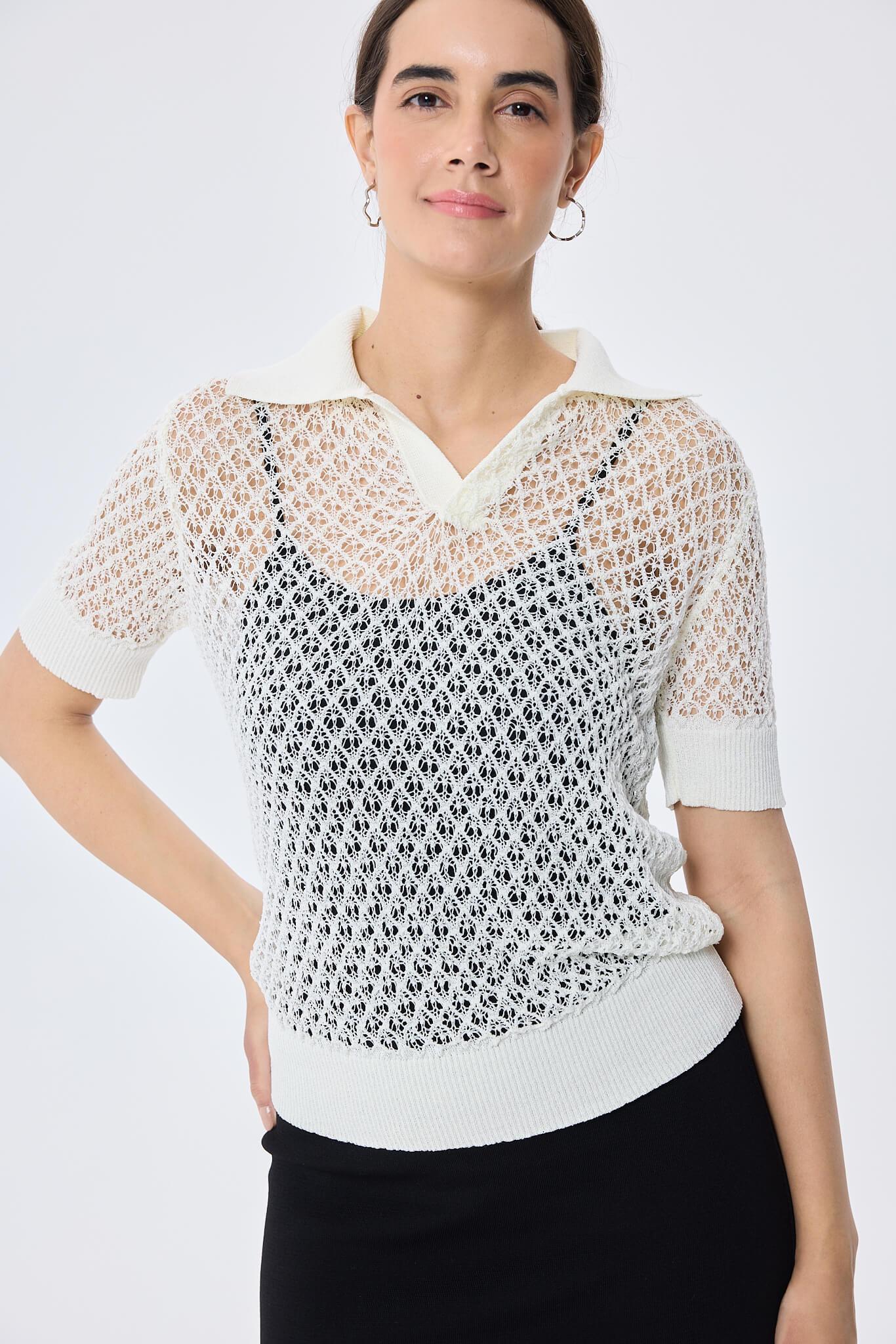 Ava Ajurlu Polo Yaka Kadın Triko Bluz Ekru