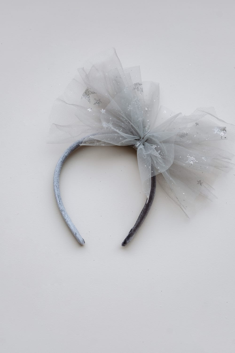 Yumuşak, kadife taç. Gümüş tül fiyongunda parlak yıldız figürü. Elde üretim.