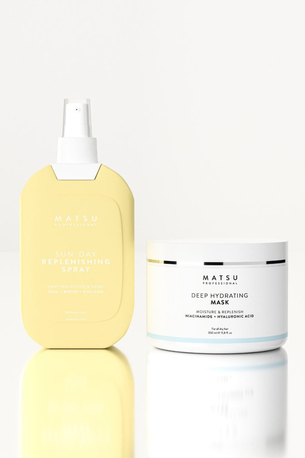 Sun Day Isı Koruyucu Bakım Spreyi (200 ml), saçı 232°C’ye kadar ısıya ve güneş ışınlarına karşı koruyarak kuruluğu önler. Deep Hydrating Yoğun Nem Maskesi (350 ml), 17 bitkisel kompleks ve Hyaluronik Asit içeriğiyle saçın nem dengesini sağlar, kuruluğu giderir ve daha elastik bir yapı kazandırır. Birlikte kullanıldığında, saçların ihtiyacı olan nemi sağlar, ısı kaynaklı hasara karşı korur ve saçları sağlıklı bir görünüme kavuşturur.