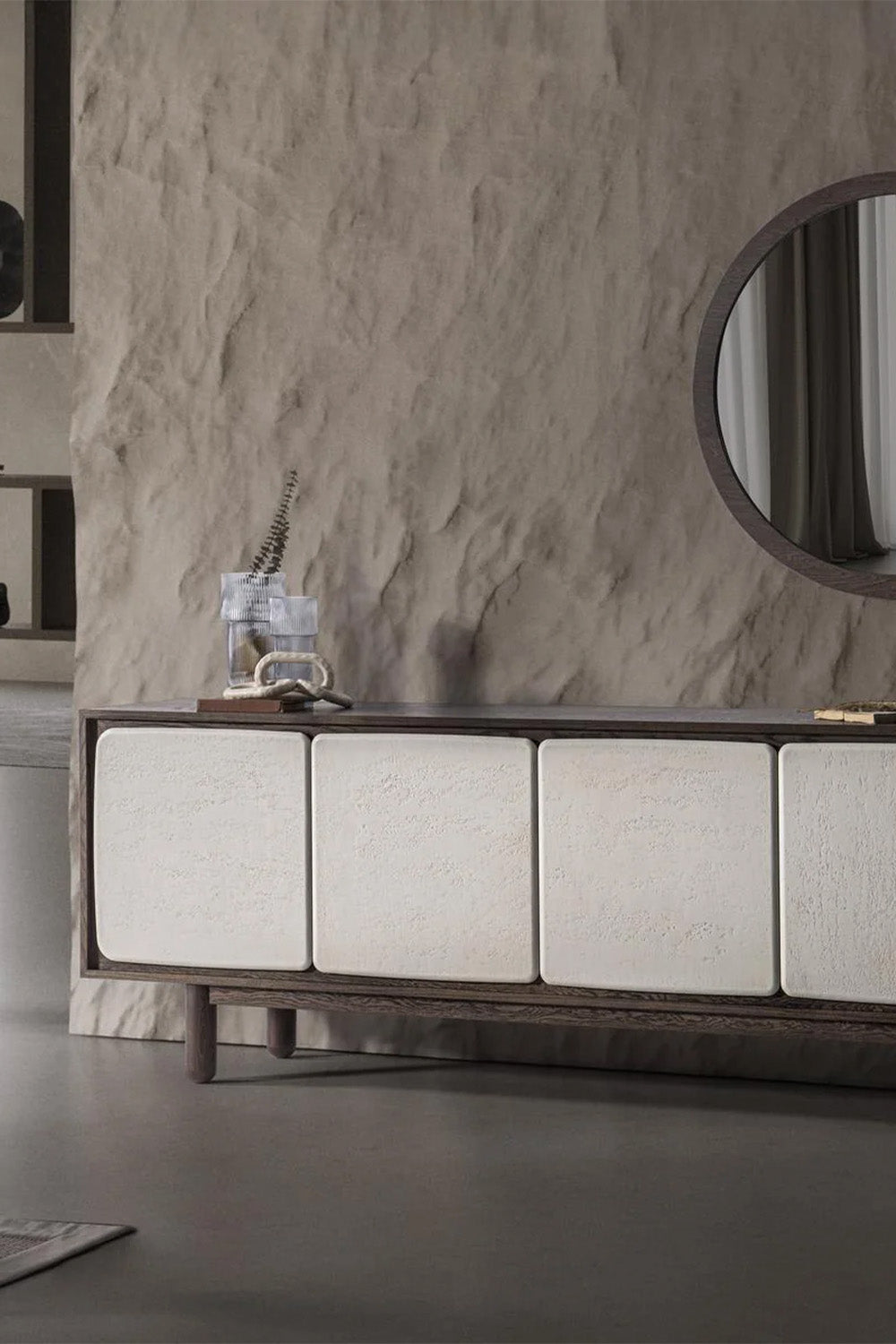 Kapadokya Konsol, yalın duruşuyla minimal estetiği yansıtıyor. Doğadan ilham alan dokusu ve nötr tonları sayesinde sade ama iddialı bir atmosfer yaratmak isteyenler için ideal bir tercih.