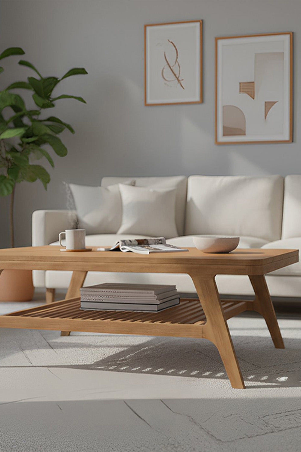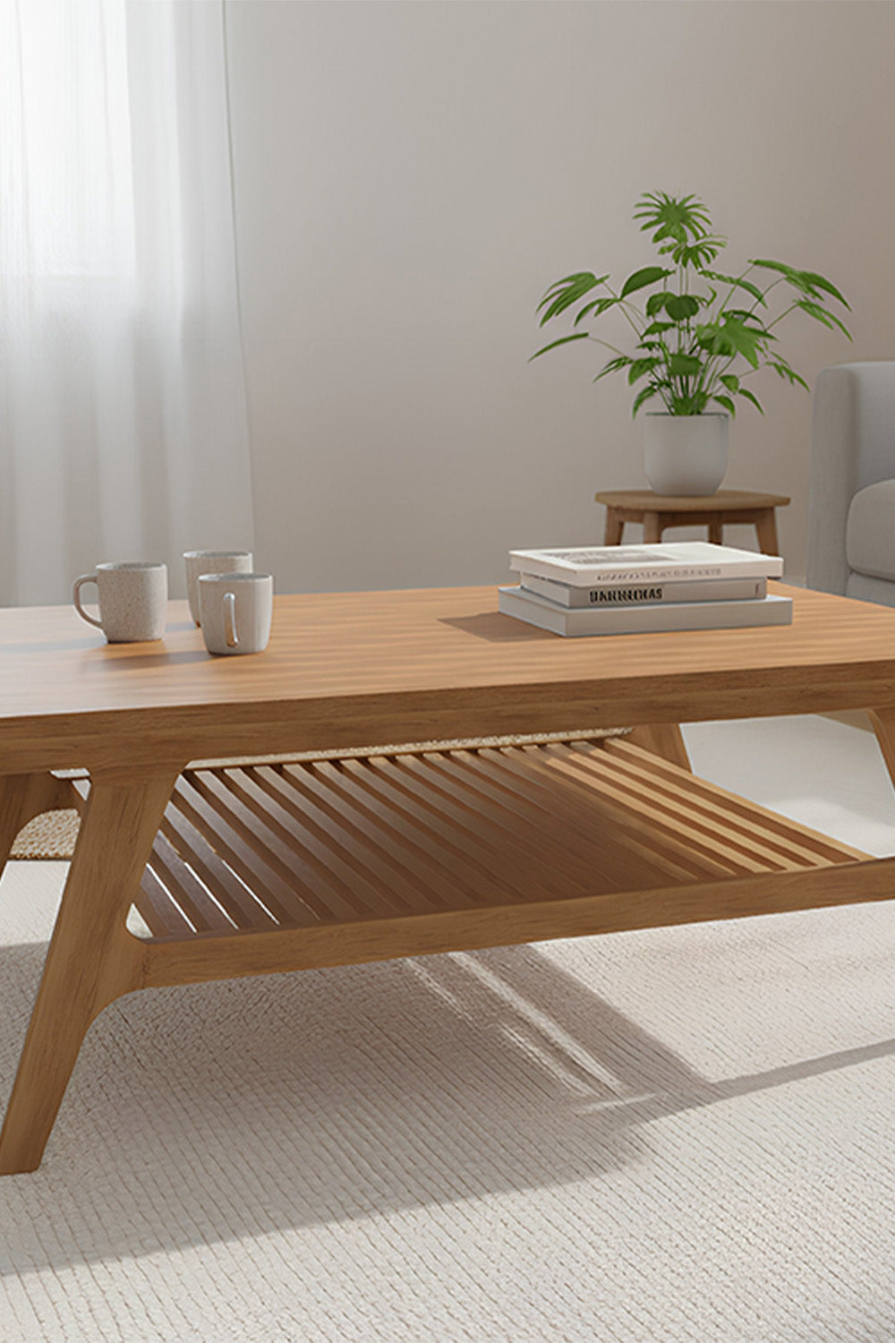 Yumuşak hatları ve kullanışlı alt rafıyla yaşam alanlarına bir denge katar.