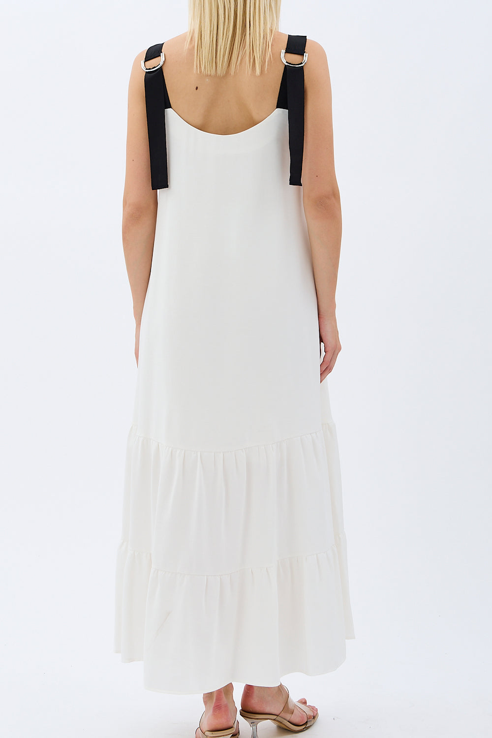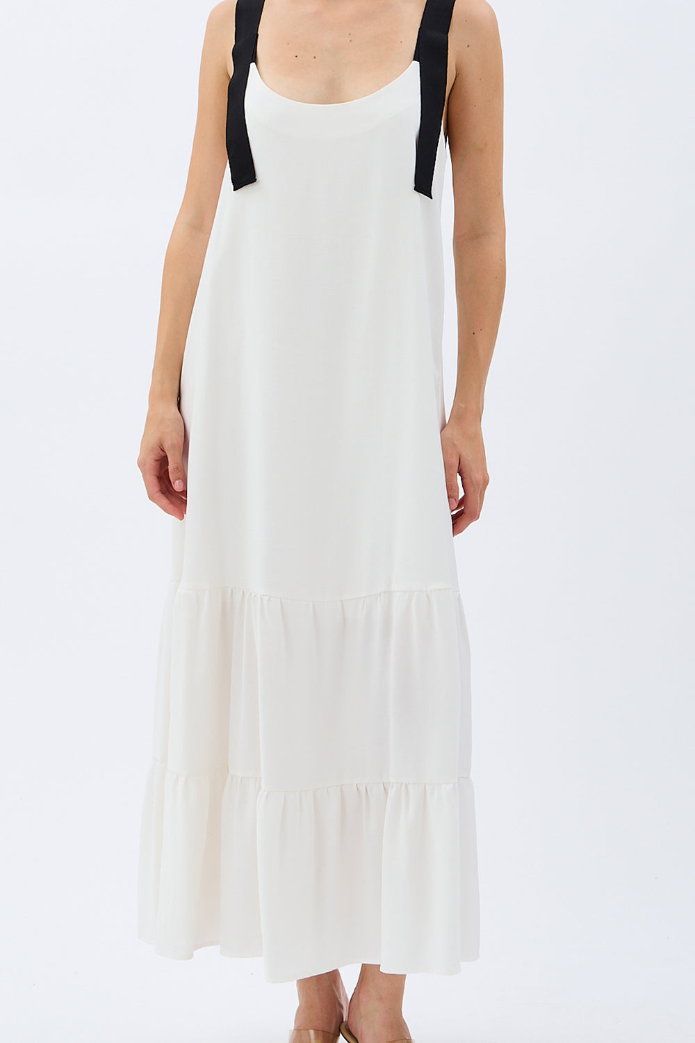 Askılı Bağcıklı Kadın Elbise – Modal Karışımlı Kumaş, Kat Kat Kloş Etek