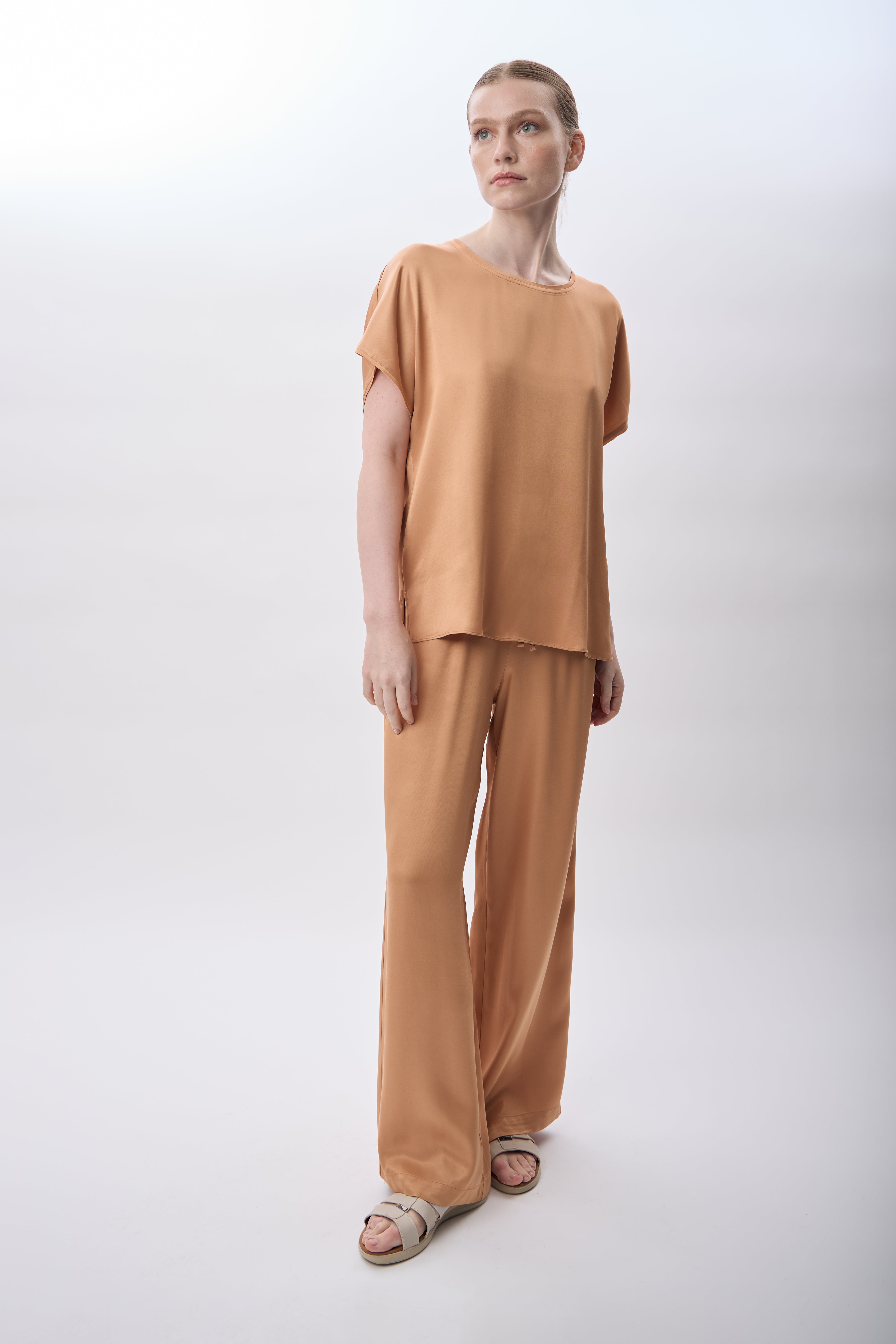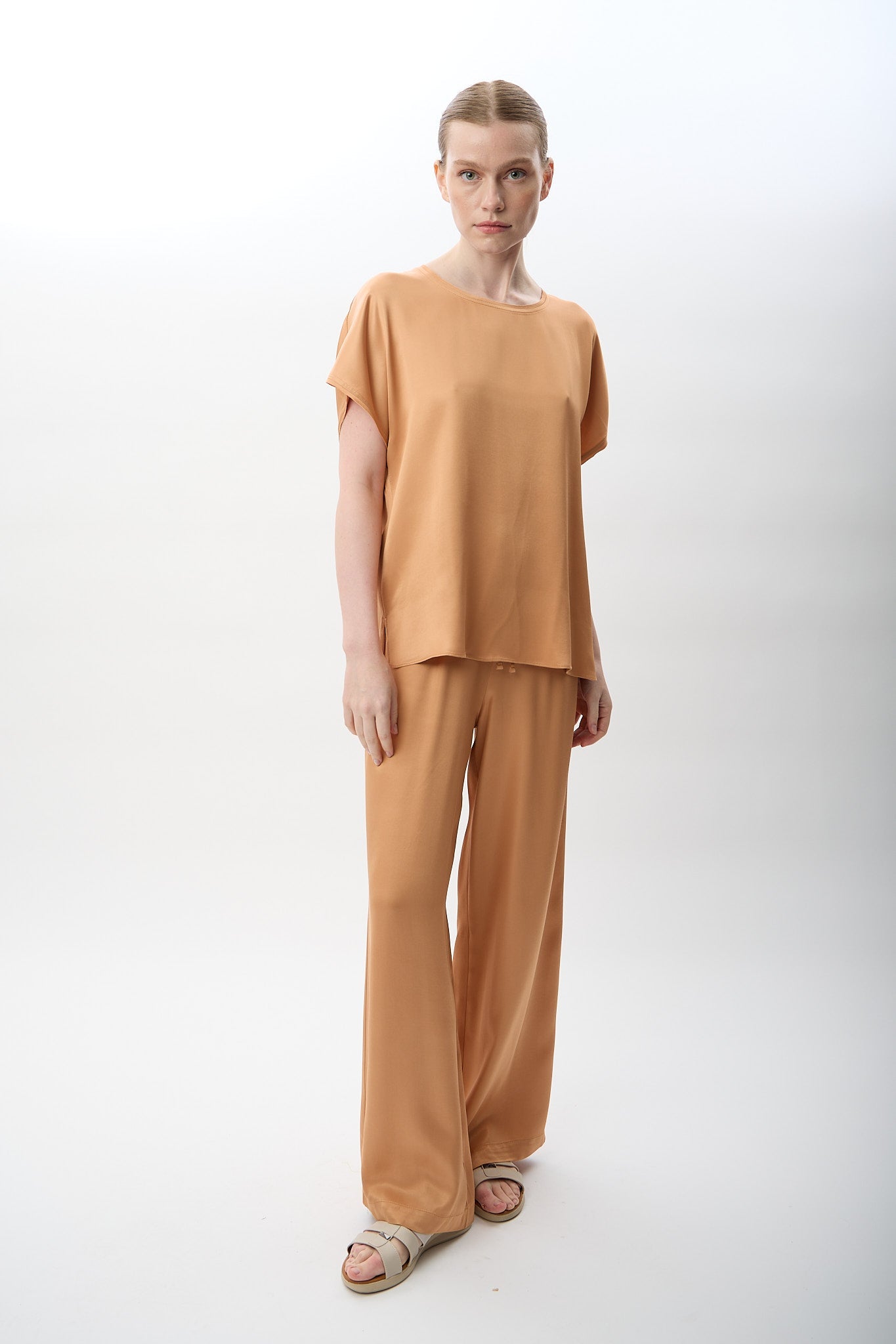 Bağcıklı Rahat Kesim Saten Pantolon (Mercan)