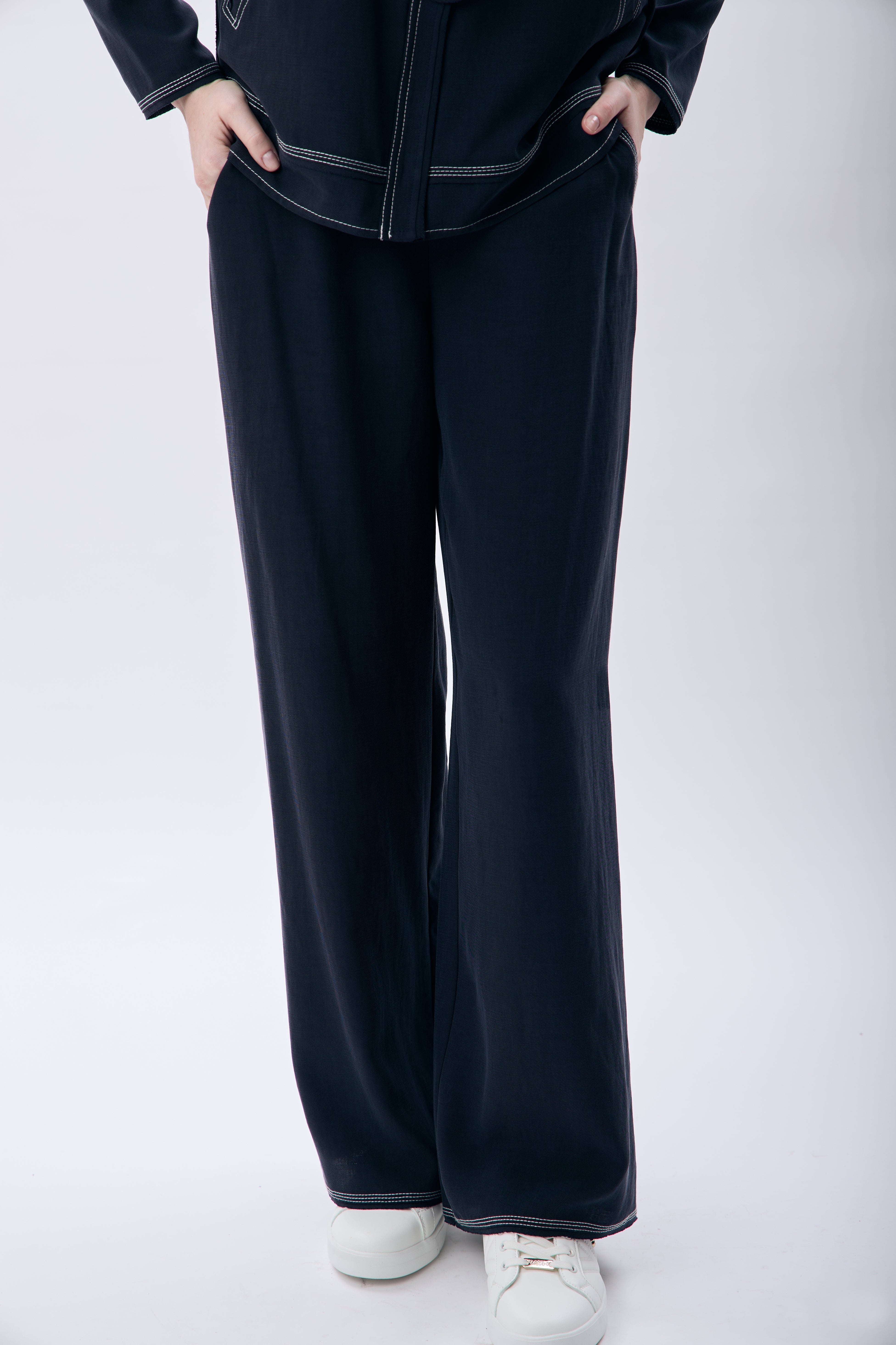 Günlük kullanıma uygun, rahat ve şık bir pantolon arıyorsanız, dikiş detaylı cepli kadın pantolon tam size göre. Bel kısmı lastikli tasarımı sayesinde kolayca uyum sağlar ve gün boyu konfor sunar. Düz paça ve rahat kesim ile modern bir siluet yaratır.