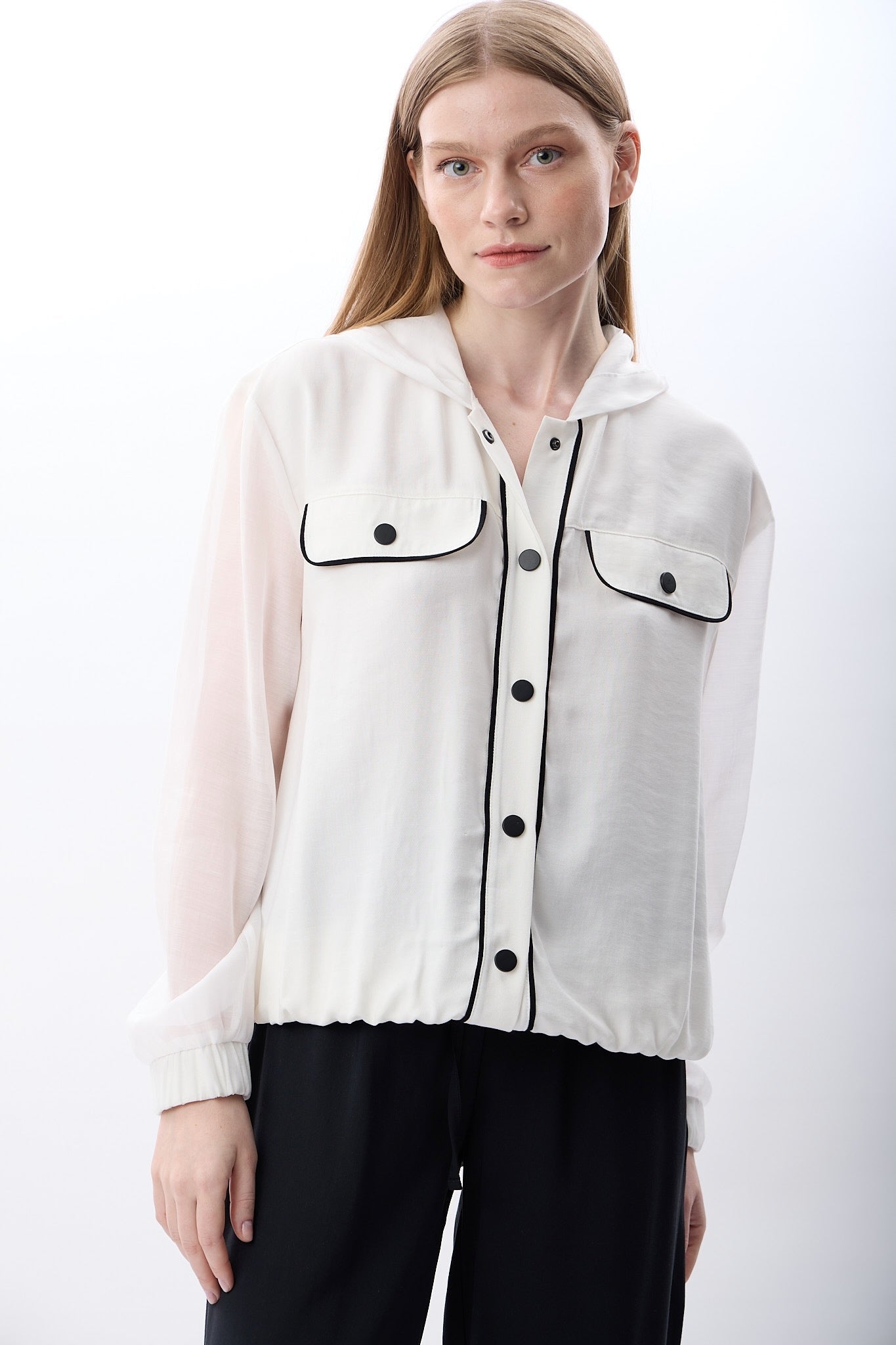 Kapüşonlu Transparan Kollu Modal Gömlek – %90 Modal, %10 PA