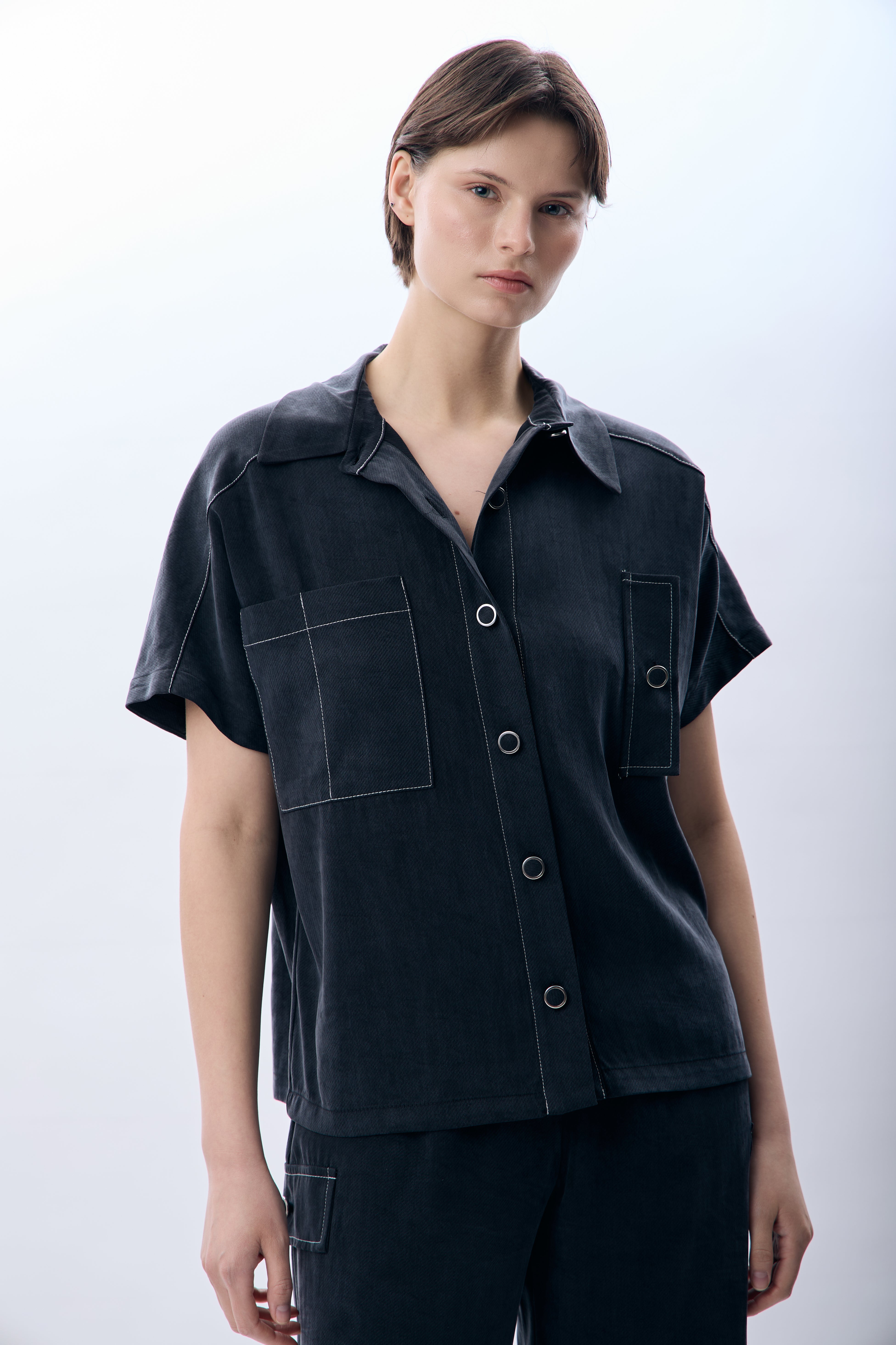 Kısa Kollu Kapak Cep Detaylı Gömlek