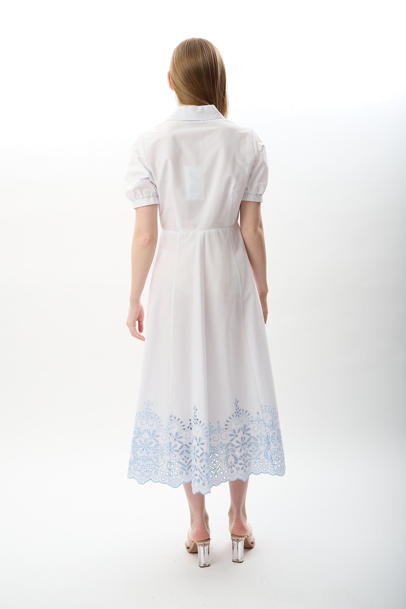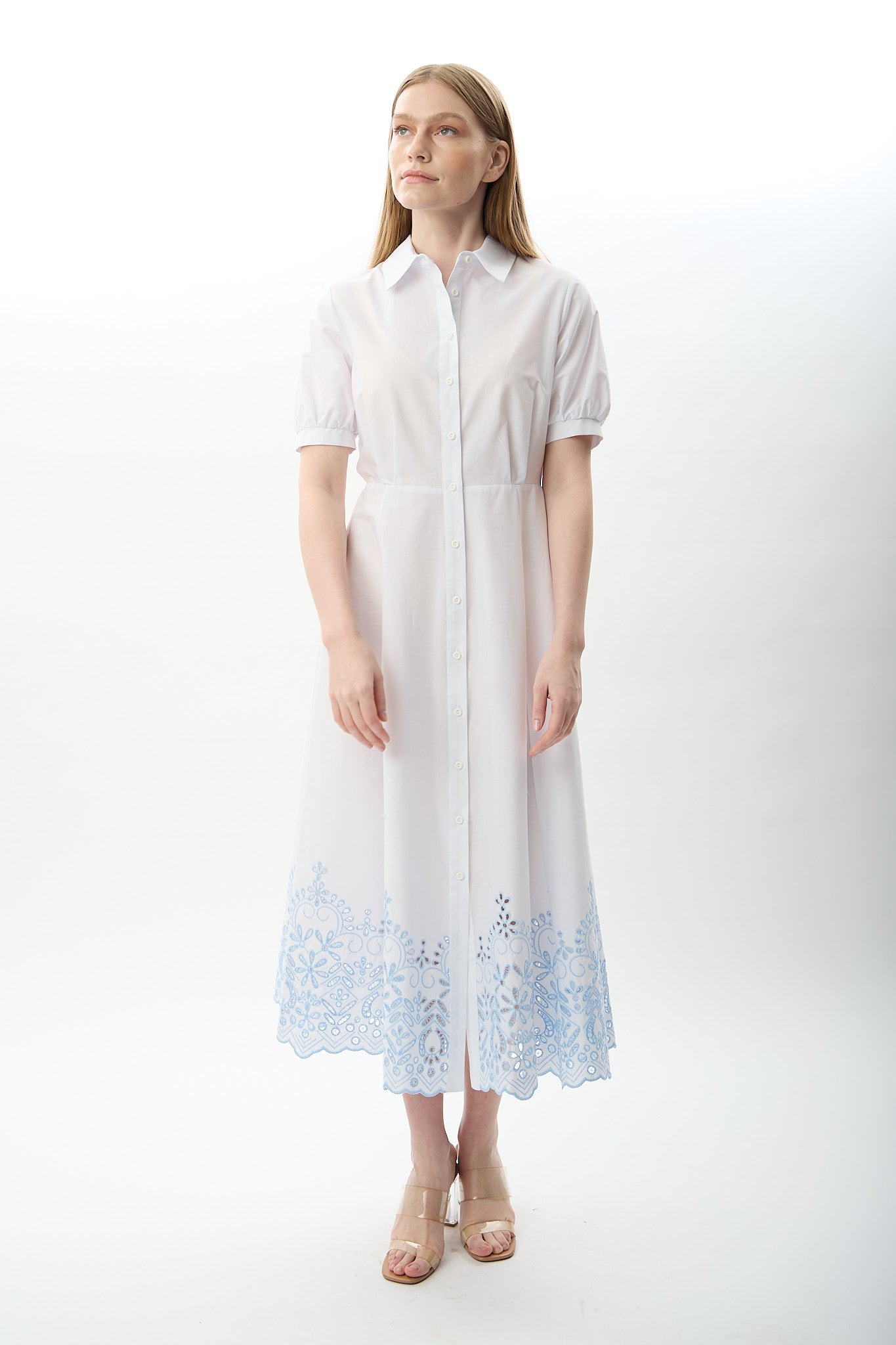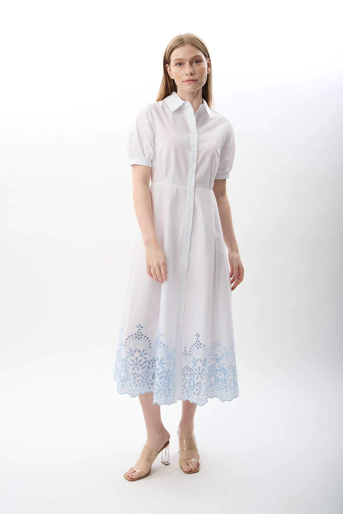 Nakış Detaylı Gömlek Elbise (Beyaz)
