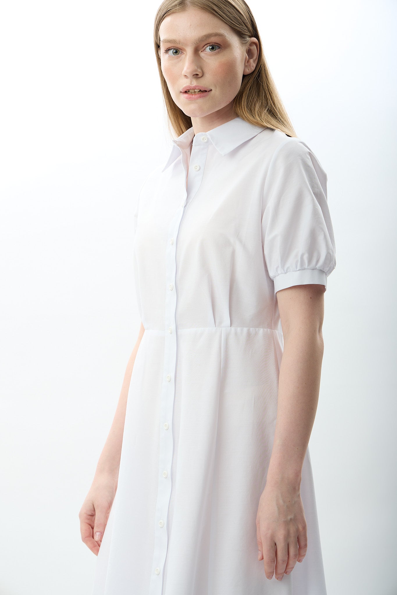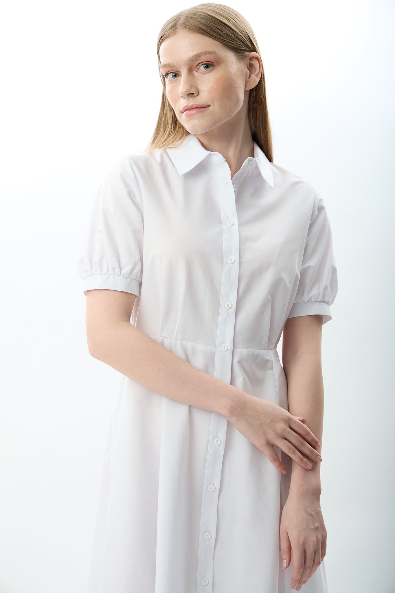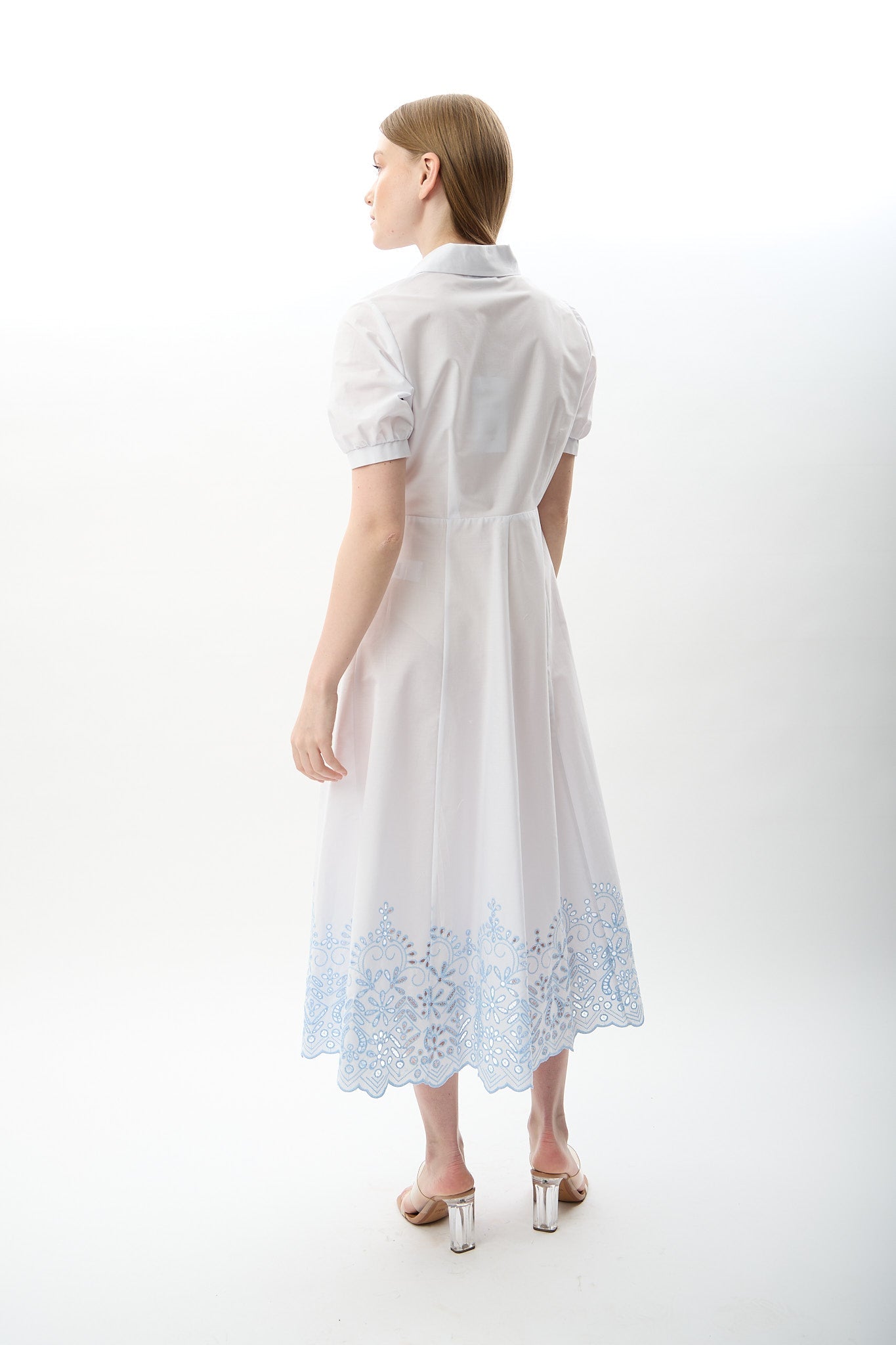 Nakış Detaylı Gömlek Elbise (Beyaz)