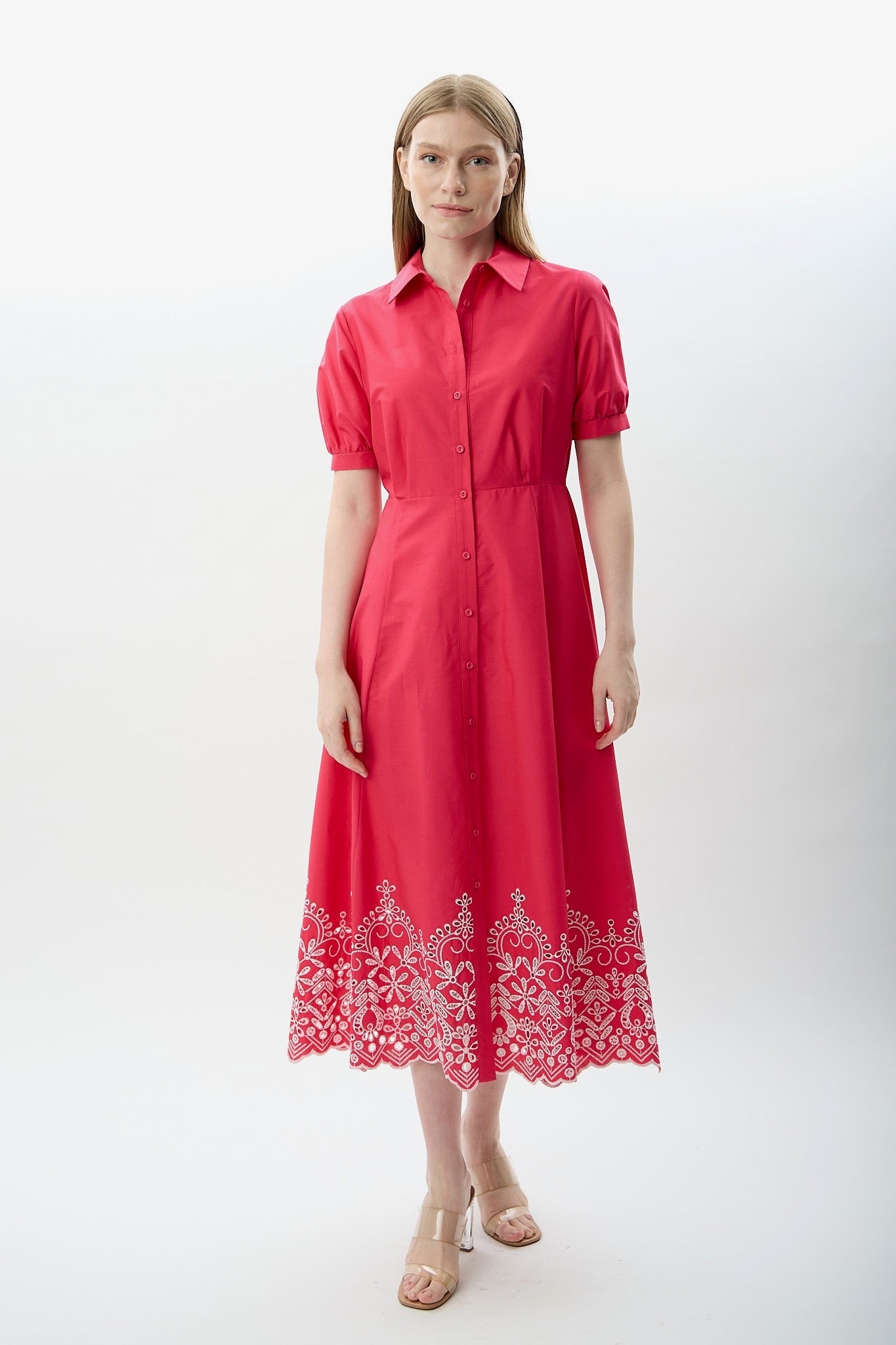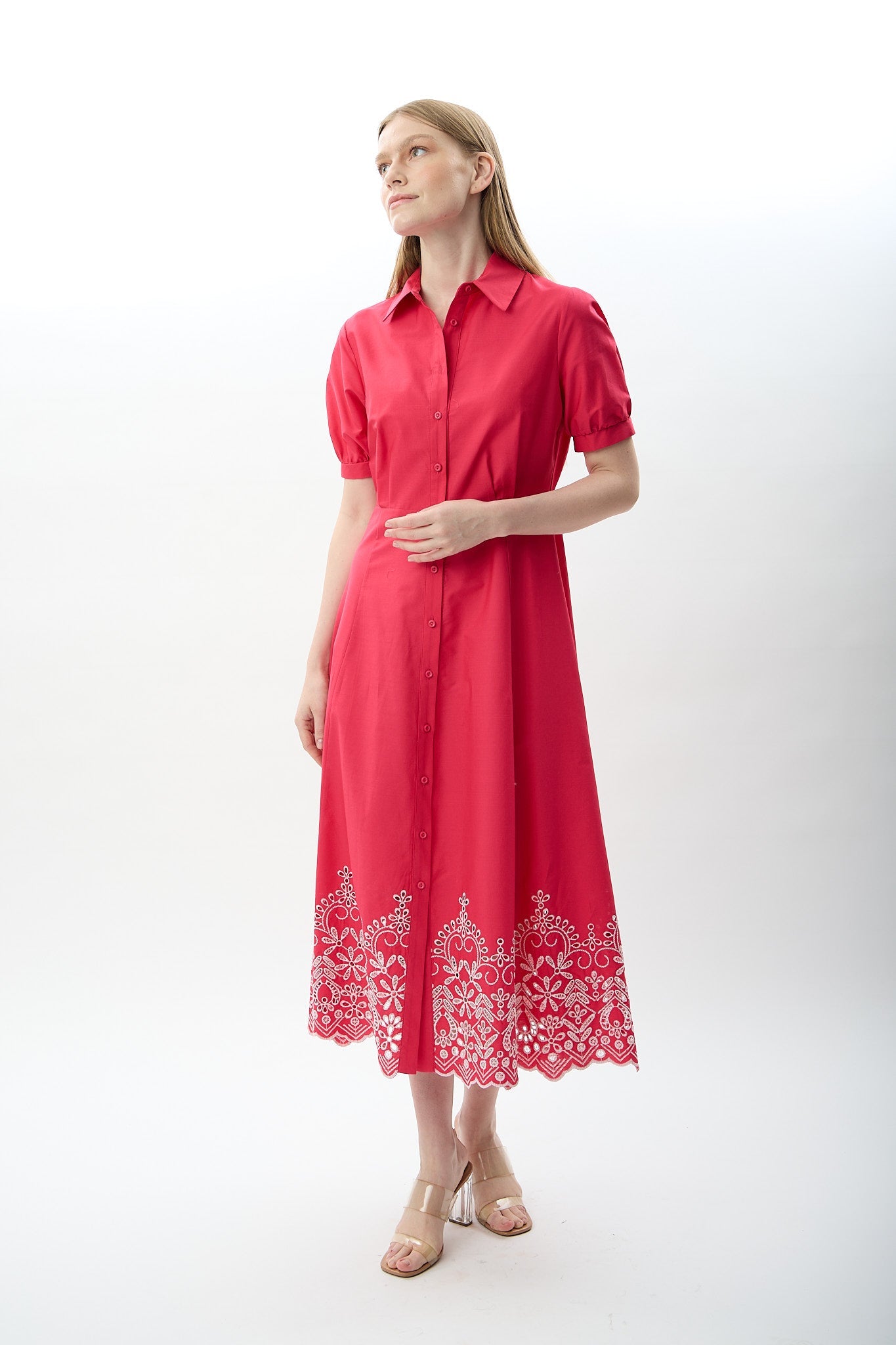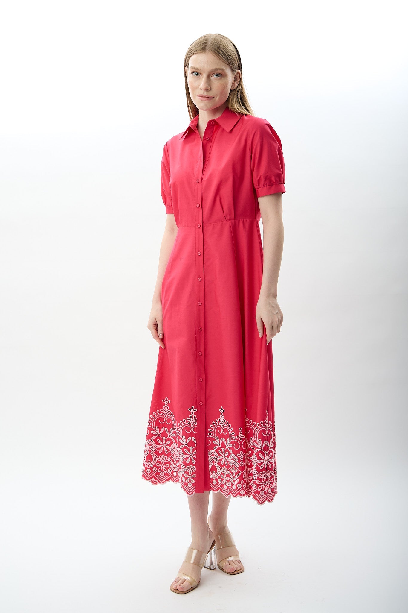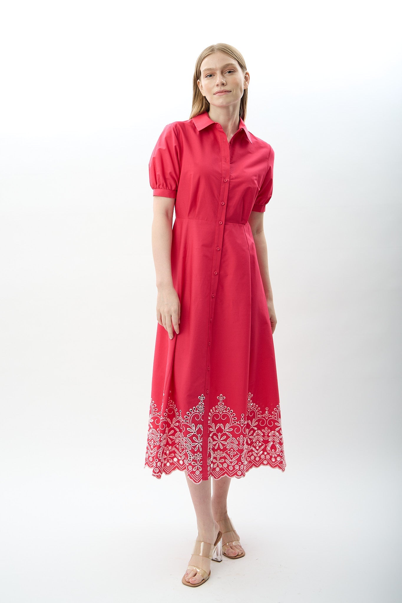 Nakış Detaylı Gömlek Elbise (Kırmızı)