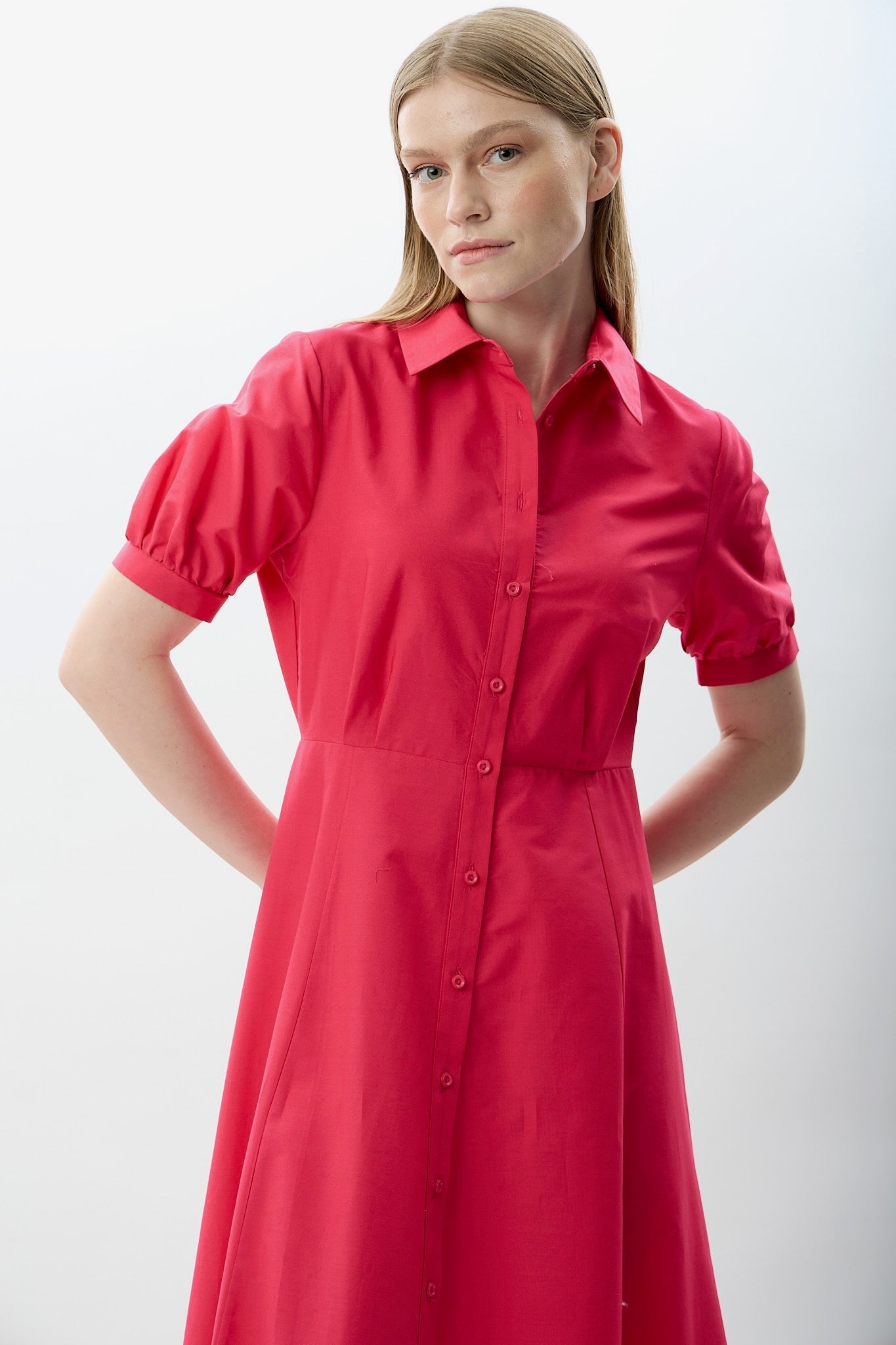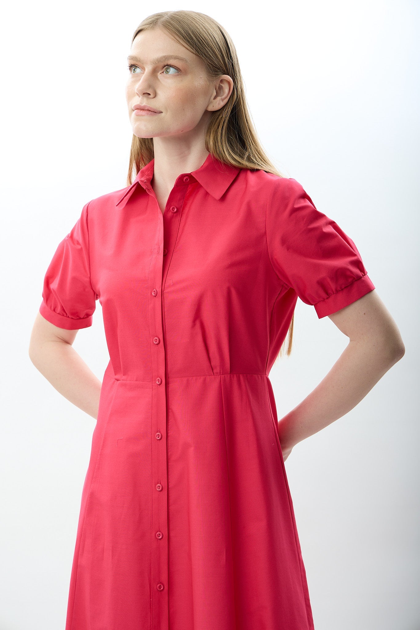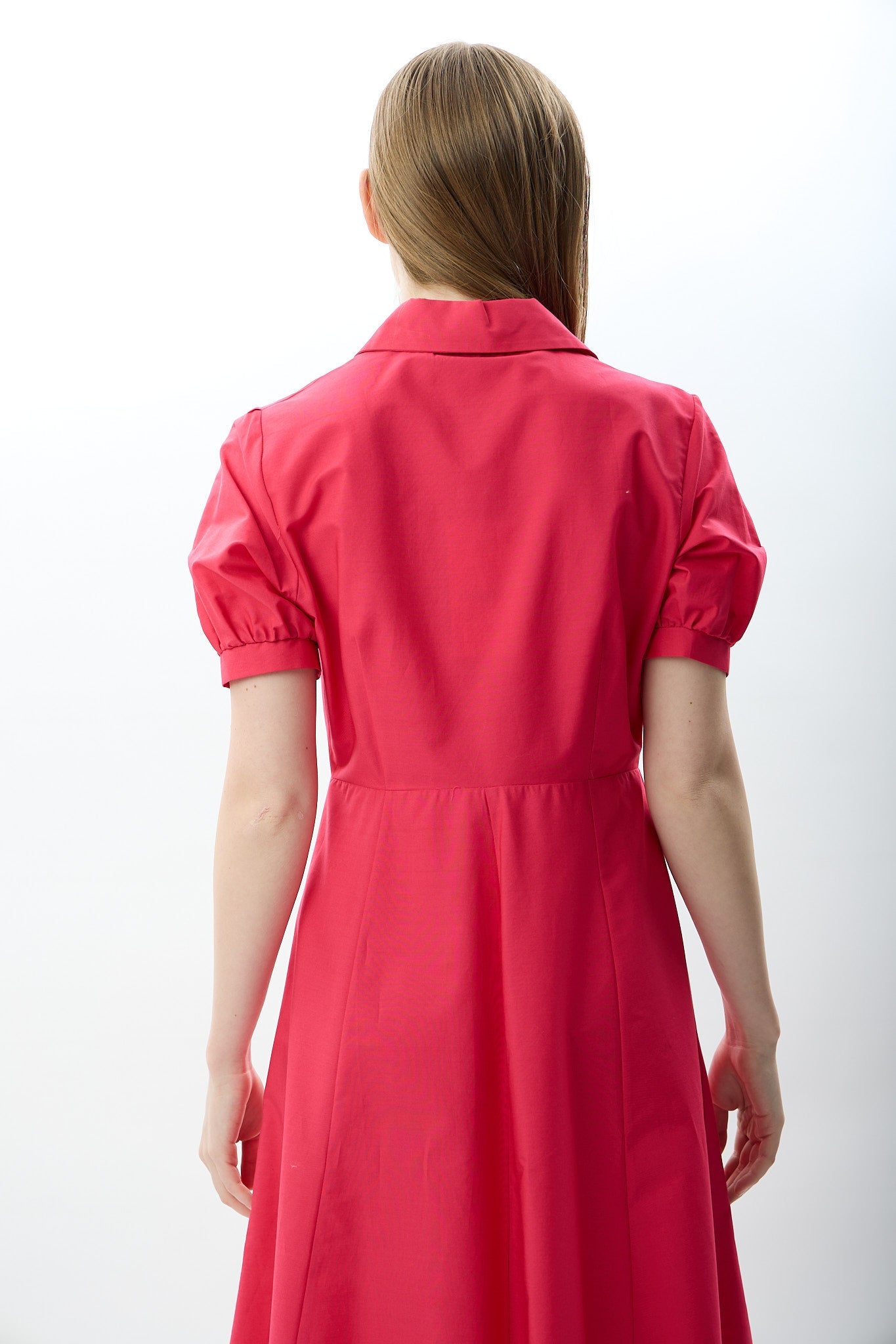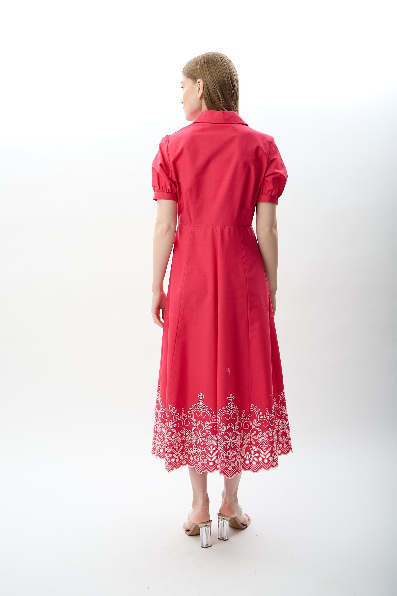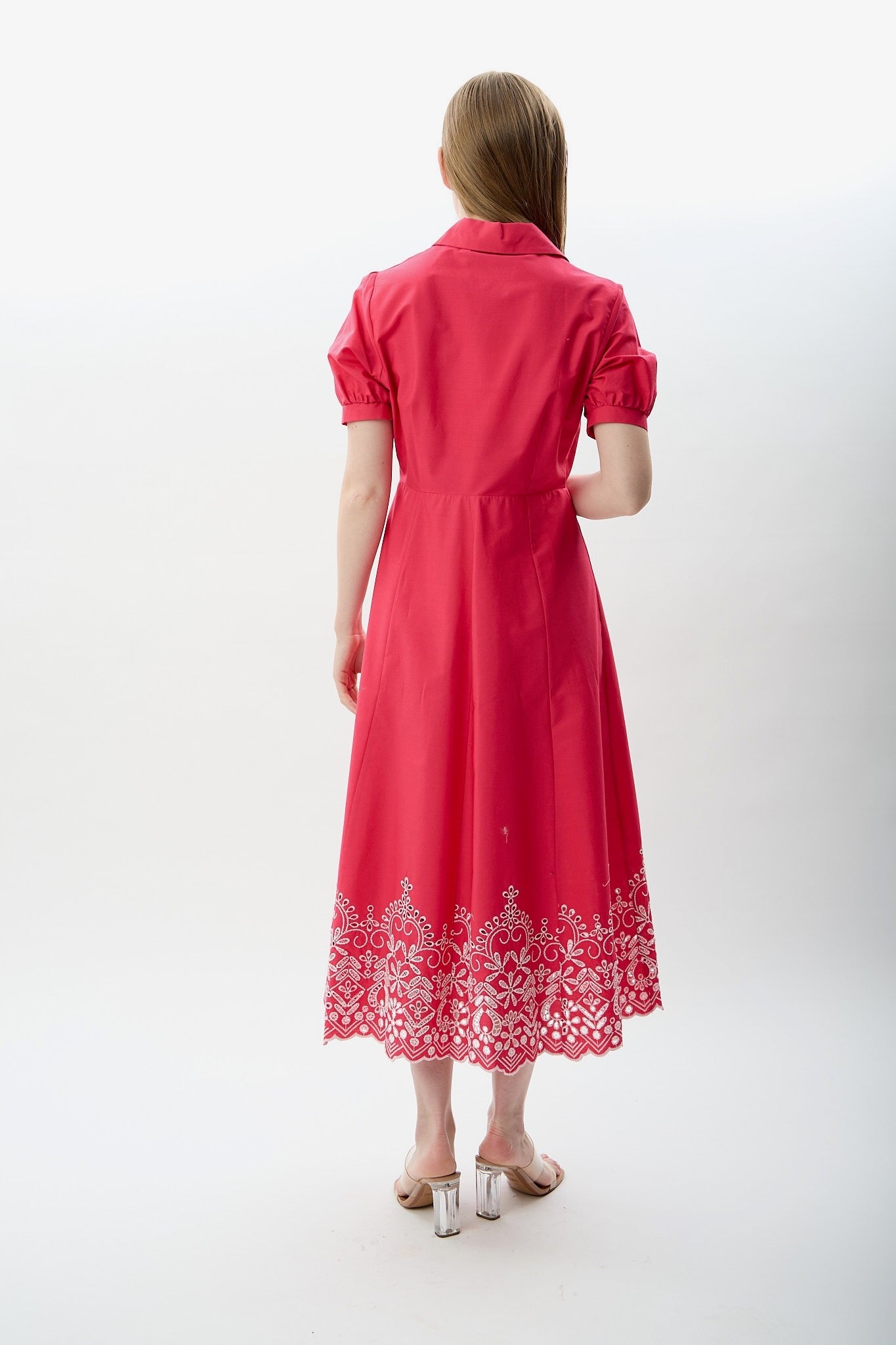 Nakış Detaylı Gömlek Elbise (Kırmızı)
