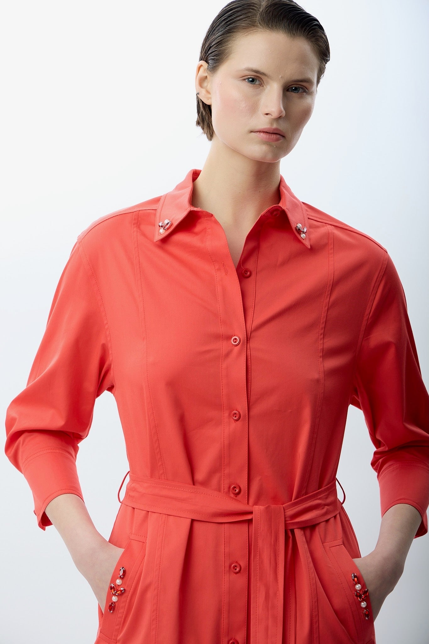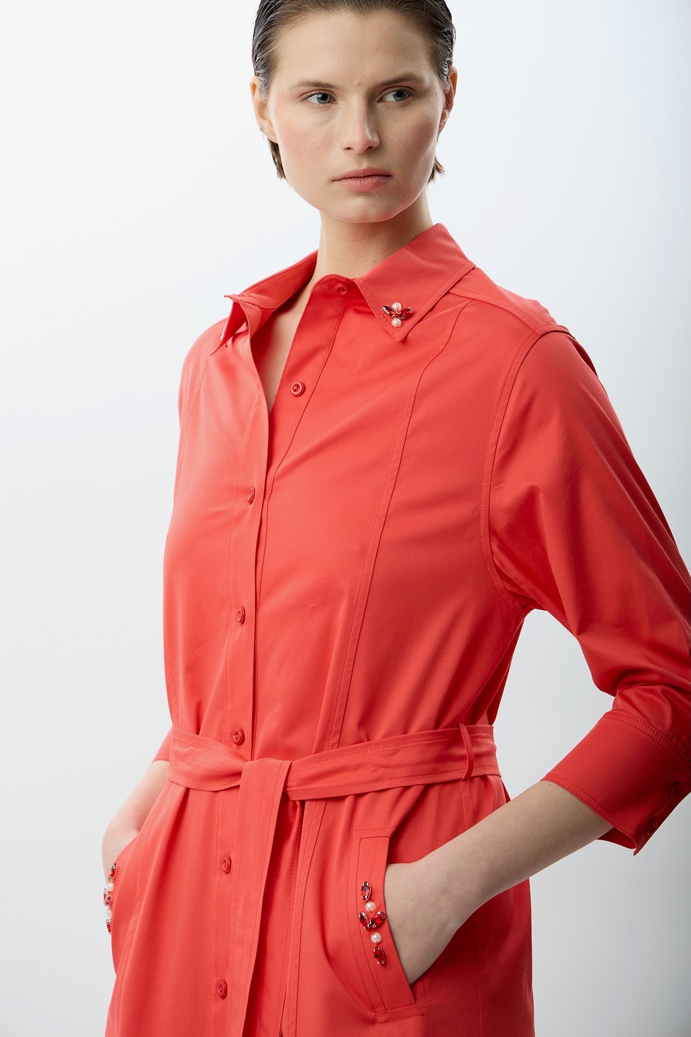 Taş Detaylı Gömlek Elbise (Gül Kurusu)