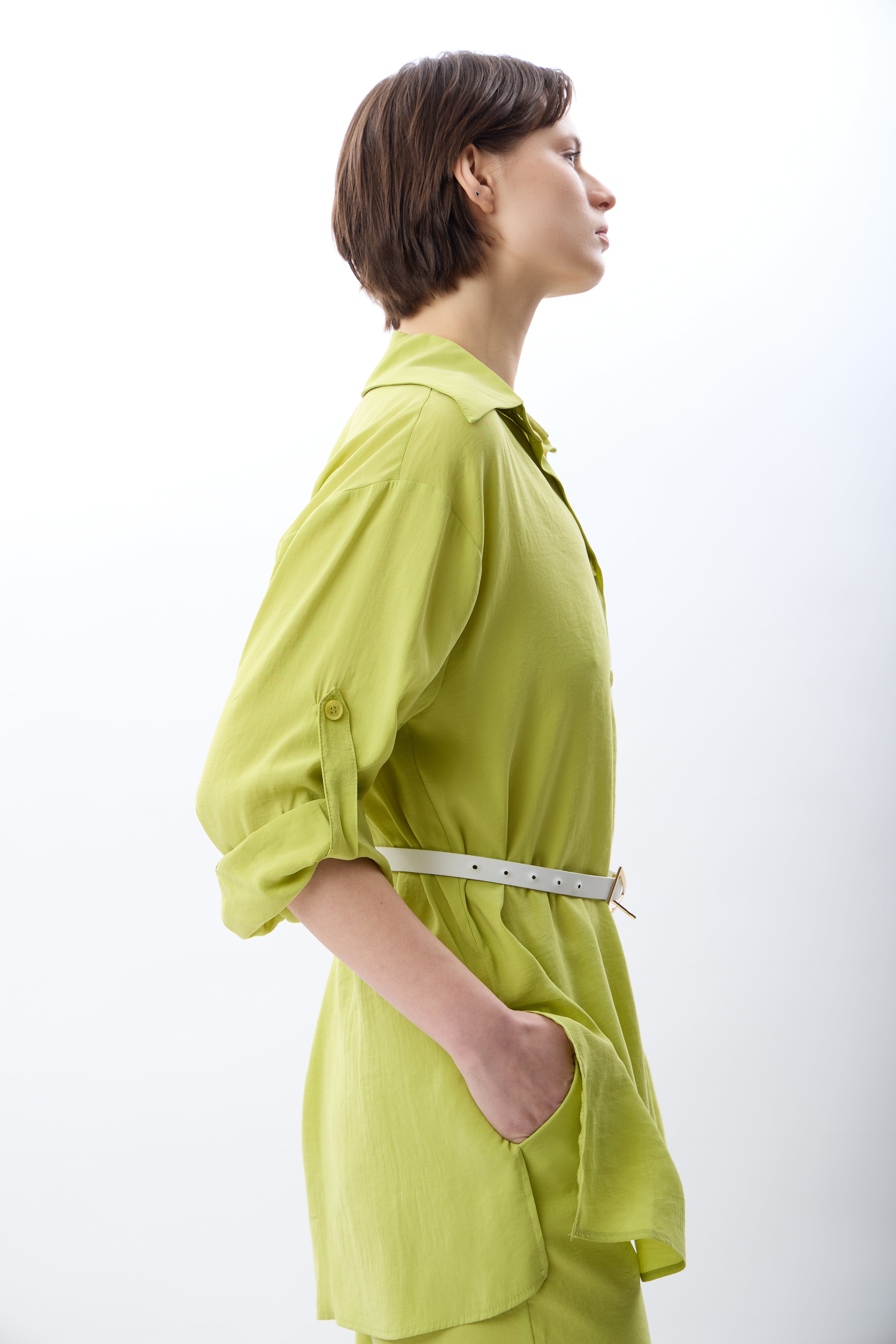 Yırtmaç Detay Kemerli Gömlek (Yeşi)