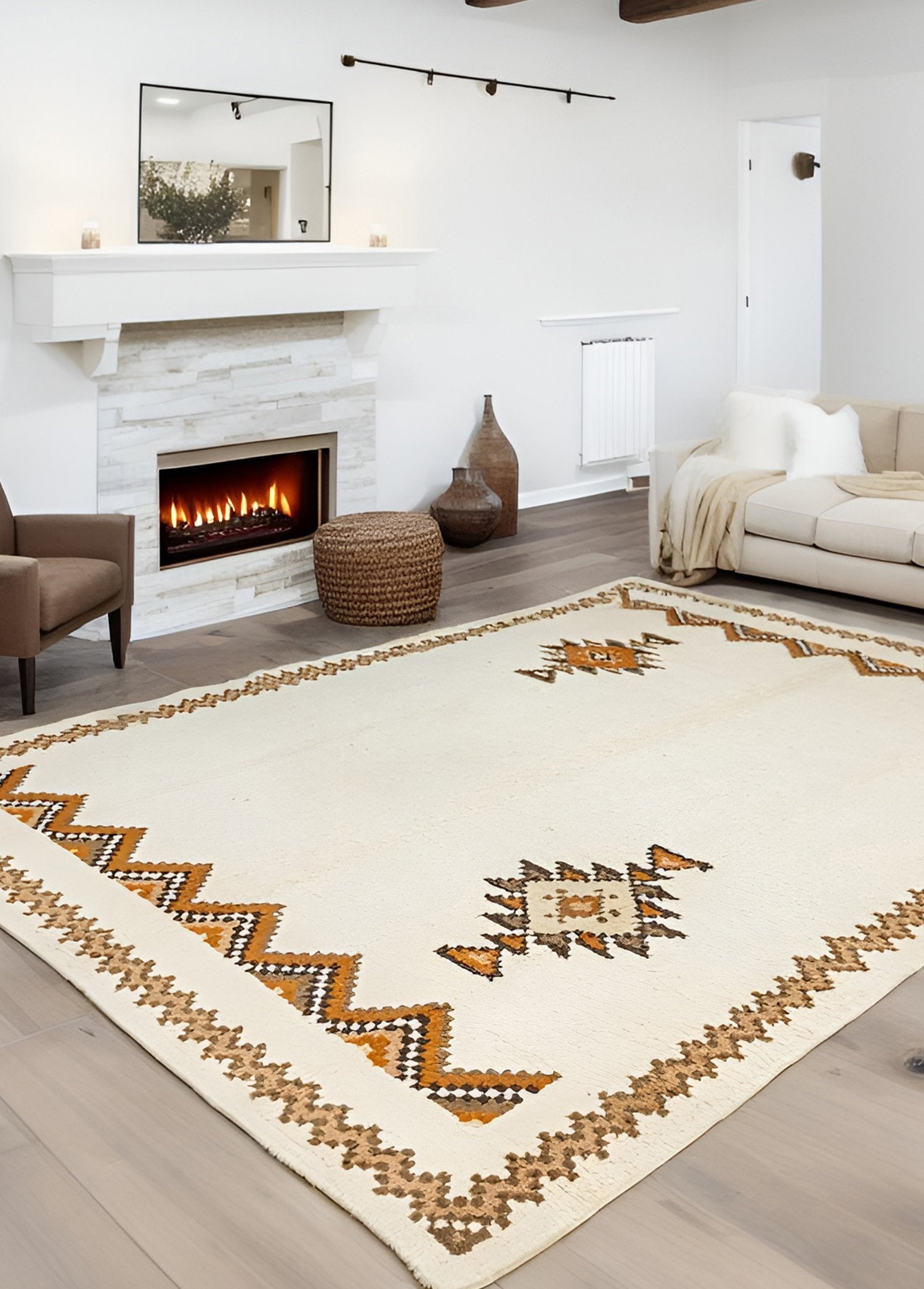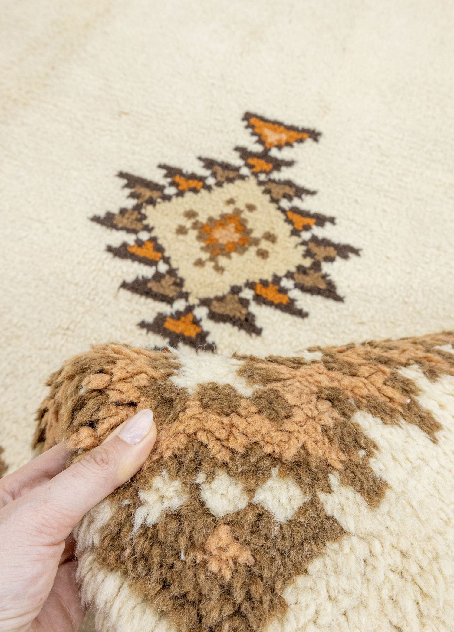 Soho Antiq halı modellerinin içerisindedilediğiniz konsepte uygun tasarımı bulmak mümkün! Soho Antiq halı modellerimizdoğal yünden oluşur ve tamamı el dokumasıdır. Halı, 1 ile 5 cm arası birkalınlığa sahiptir ve boyu 246 x 336 cm’dir. Halı kataloğumuzda bulunan çeşitlirenk seçeneklerinden biri olan krem halının ana rengidir. Ayrıca halımodelindeki diğer renkler turuncu ve kahverengi tonlarıdır. Soho Antiq, tarihi ve yöresel dokunuşlarıylahalı modellerini bir üst seviyeye taşır. Halı üzerindeki desenler ilkel desendenilen tasarımlara sahiptir. Uşak yöresinde dokunan bu halımız el dokuma halı sanatınıneşsiz dokunuşlarına sahiptir. Soho Antiq halılarımız tamamen el dokumateknikleri ile tasarlanır.