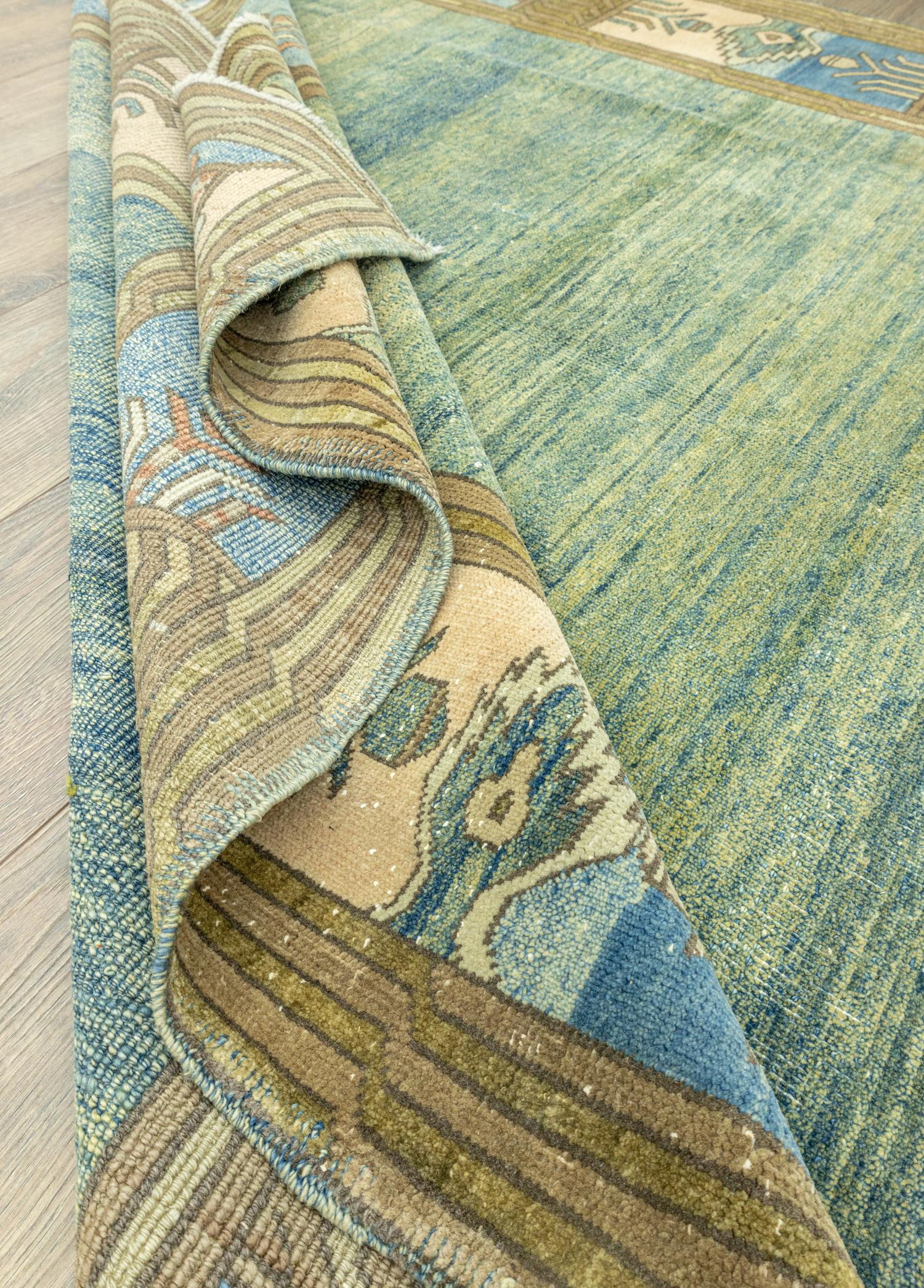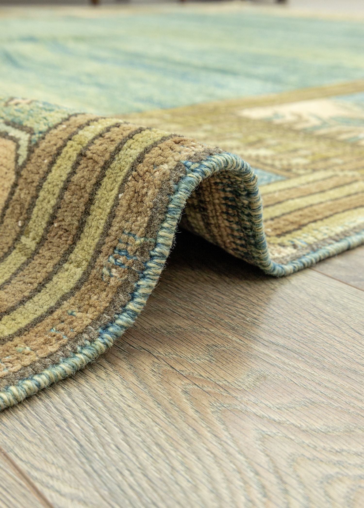 Yaşam alanınıza farklılık katacak olan Soho Antiq geleneksel halı modellerimizle karşınızdayız! Özel olarak tasarlanan bu halılar, her türlü alana uyum sağlamak üzere el dokuma tekniği ile özenle hazırlanmıştır ve tamamen doğal yünden oluşmaktadır. Bu da halıları diğerlerinden farklı kılan birçok özellikten sadece bir tanesidir. Ana rengi yeşil tonları olan halı modelimizde, krem, mavi gibi yan renkler bulunmaktadır ve bu renklerin tamamı organik kök boyadır. Bu uyumlu renk kombinasyonlarıyla estetik bir halıya sahip olabilirsiniz.