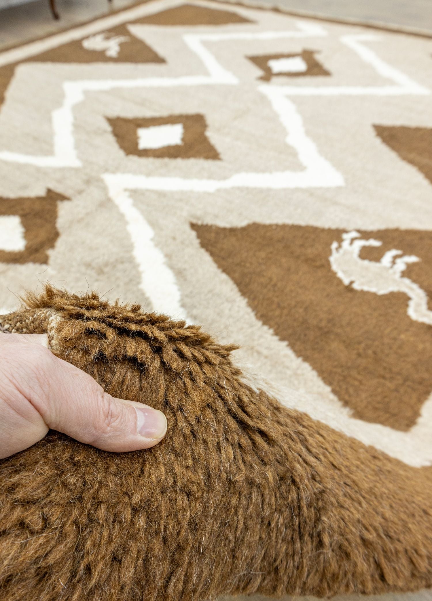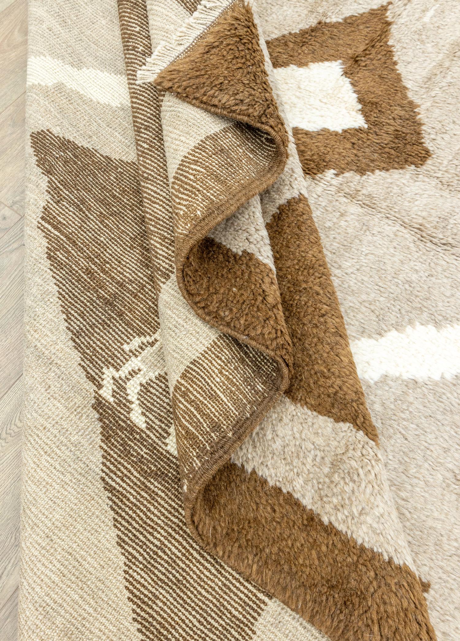 Zamanda yolculuğa çıkaracak, geleneksel Moroccan halı modelleri Soho Antiq ile sizlerle! Tamamen doğal yün ile işlenen bu halı modeli el dokuma ile hazırlanmıştır. Göz alıcı tasarımında bulunan renkler kahverengi tonları ve kremdir. Öte yandan Fas coğrafyasının belirgin karakteristik özelliklerini bu halı eşsiz modelinde bulmak mümkün. Halının boyu 269 x 304 cm’dir ve kalınlığı 1-5 cm arasındadır. Soho Antiq, halı modelleri ile yaşam alanınıza farklılık katar. Tarihi dokunuşlara sahip el dokuması halıları zamanla yıpranma gösterebilir ancak bu tür yıpranmalar halı modellerinin yaşını belirler ve onlara otantik bir özellik katar. El dokuması halılar uzun ömürlüdür ve zaman geçtikçe değerleri artar. Ek olarak el dokuma halılar, yaşam alanlarınızda bulunan ışıklandırmalardan dolayı renk farklılıkları gösterebilir ve bulundukları ortama farklılık katabilirler!