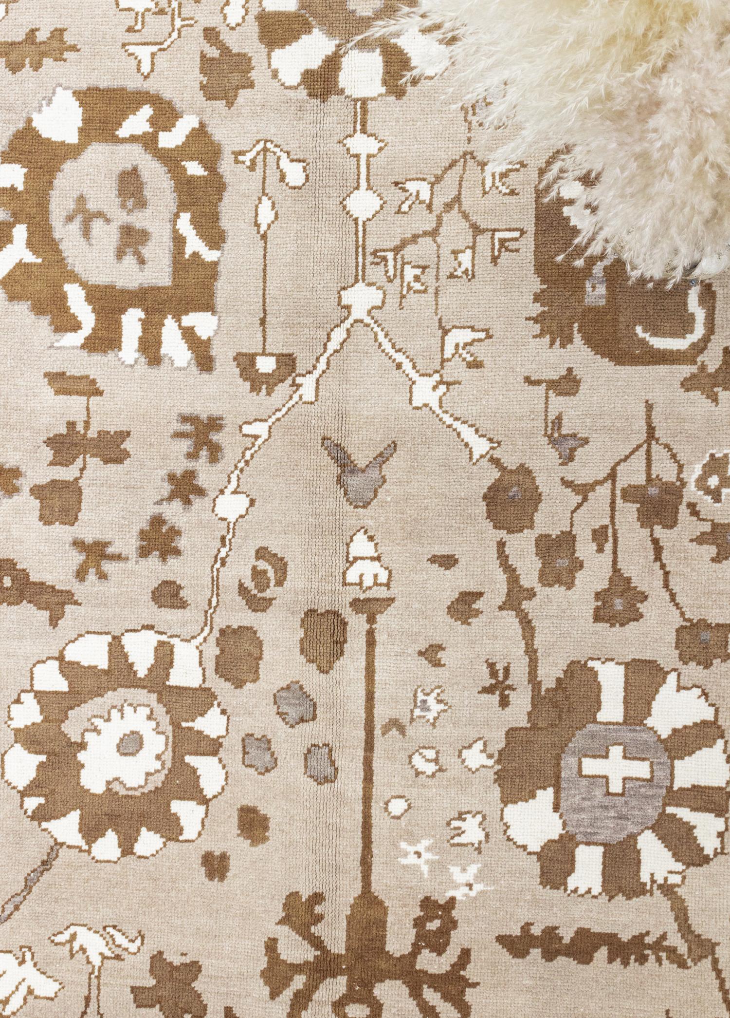 Gösterişli ve estetik tasarımlarıyla Soho Antiqhalı modellerimiz, yaşam alanınıza yeni bir hava katacak! Uzun ömürlü halımodelimiz tamamen yünden oluşur ve özel el dokuma tekniği ile dokunmaktadır.Halı modelini özel yapan ve yıllar geçse de kaliteyi korumasını sağlayanbecerilerle ürettiğimiz bu halı 1 ile 3 cm arası bir kalınlığa sahiptir ve boyu 316 x 436 cm’dir. Pek çok renk seçeneğine sahip halı modelleri içerisindenseçtiğiniz halının ana rengi kahverengidir. Ayrıca halı tasarımında bulunan diğer renkler krem ve bejdir. Soho Antiq içerisinde, kültürel ve geleneksel özelliklere sahiphalılar bulunur. Geçmişten günümüze gelen bu halı modeli Anadolu tarihindenizler taşır ve özellikle Uşak yöresinden kültürel renk ve dokunuşlara sahiptir.Tüm bu geleneksel dokunuşları, halı üzerindeki yöresel uşak halısı deseninde görmekmümkün.