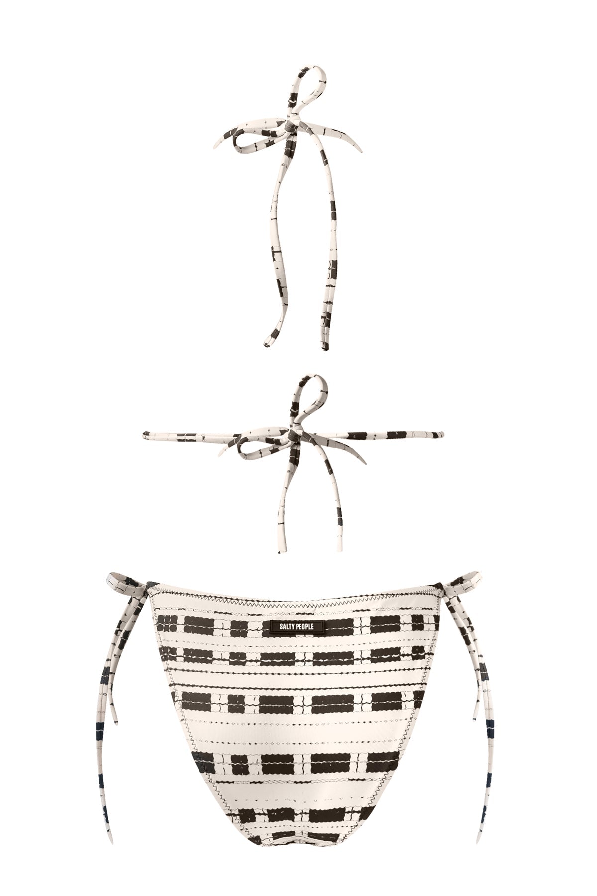 A bikini bottom in geometrical print. Fully adjustable straps.Double fabric with lining.