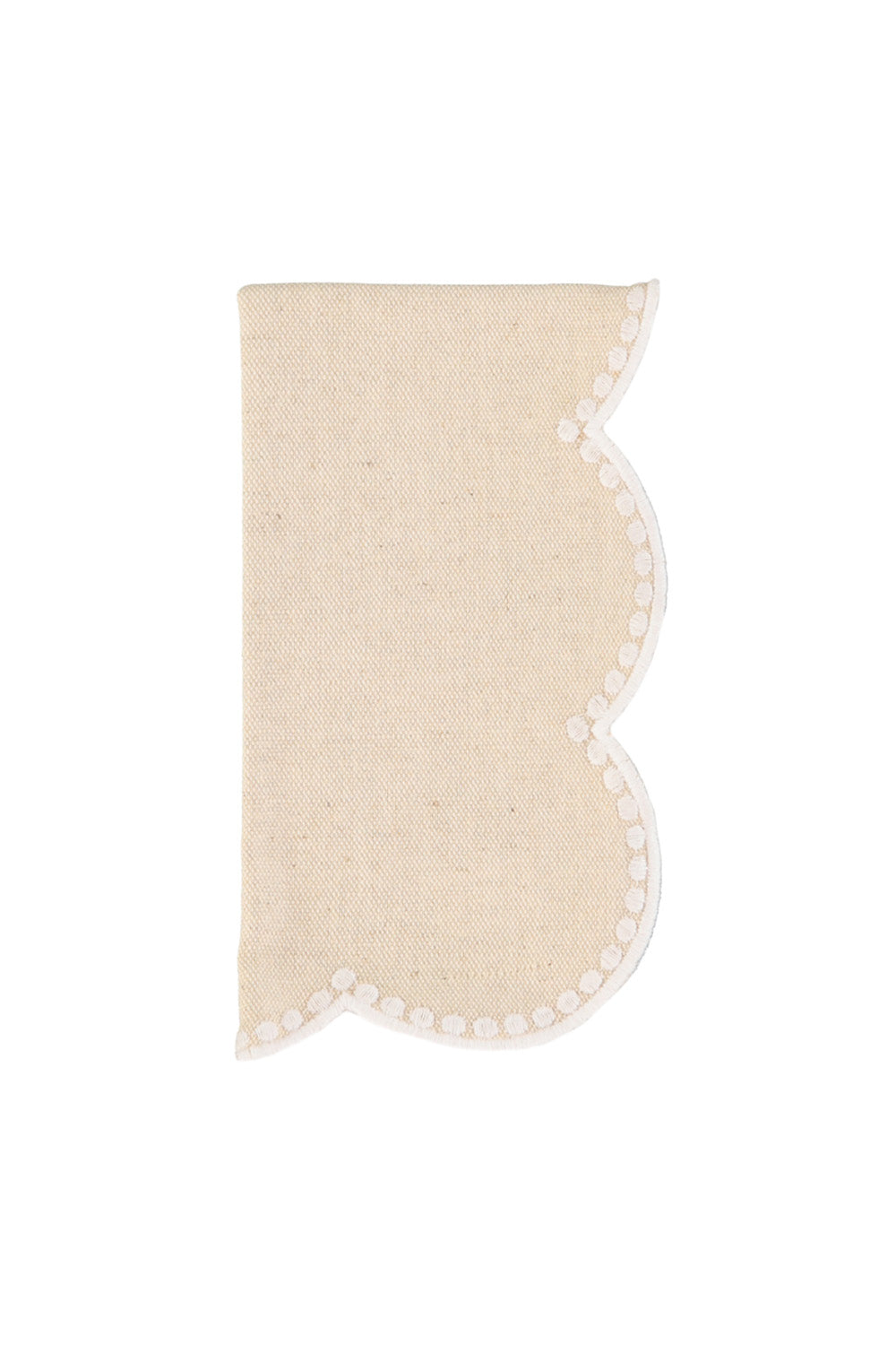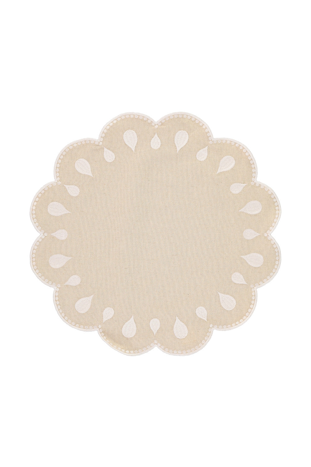 Renk: Bej zemin, beyaz damla nakış detaylı kenar