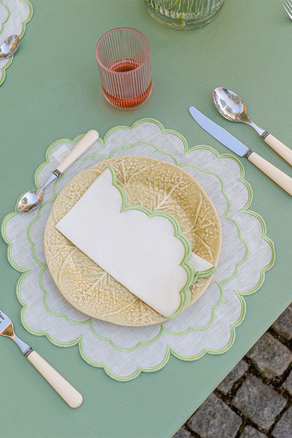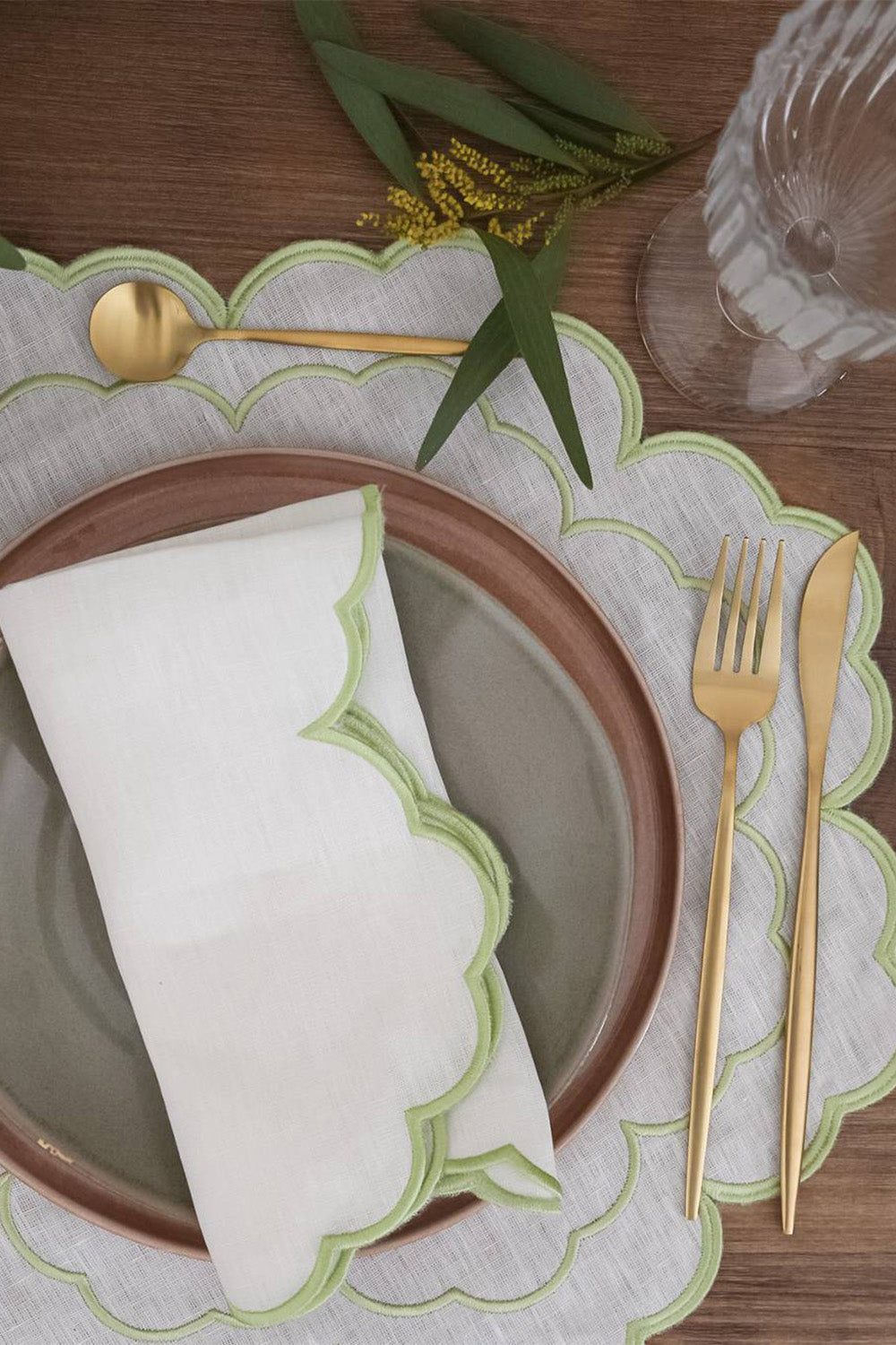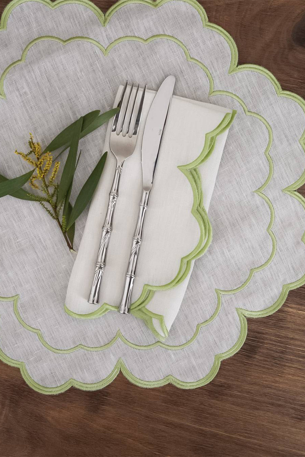 Koleksiyonu’nun kırık beyaz amerikan servisi ve yeşil peçetesi, doğadan ilham