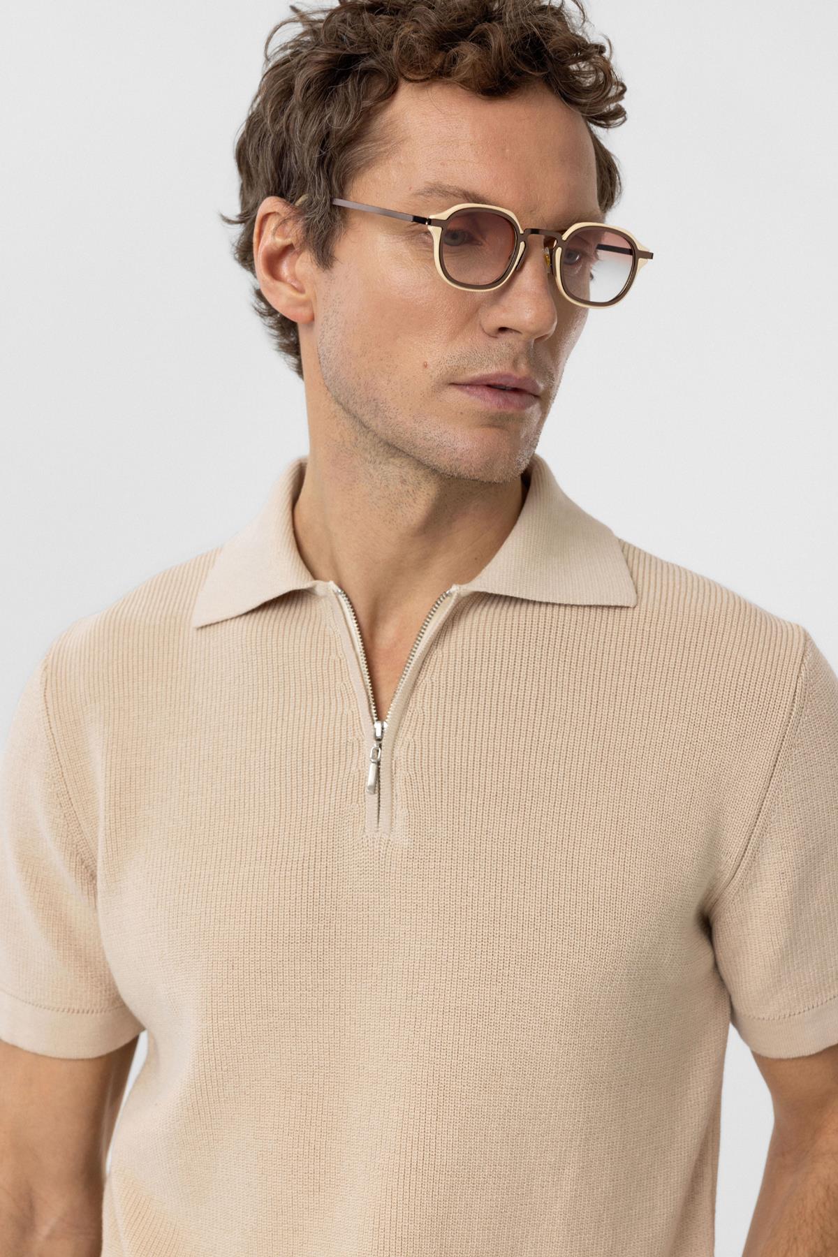 Taş Fermuarlı Dokuma Erkek Polo Yaka Triko T Shirt