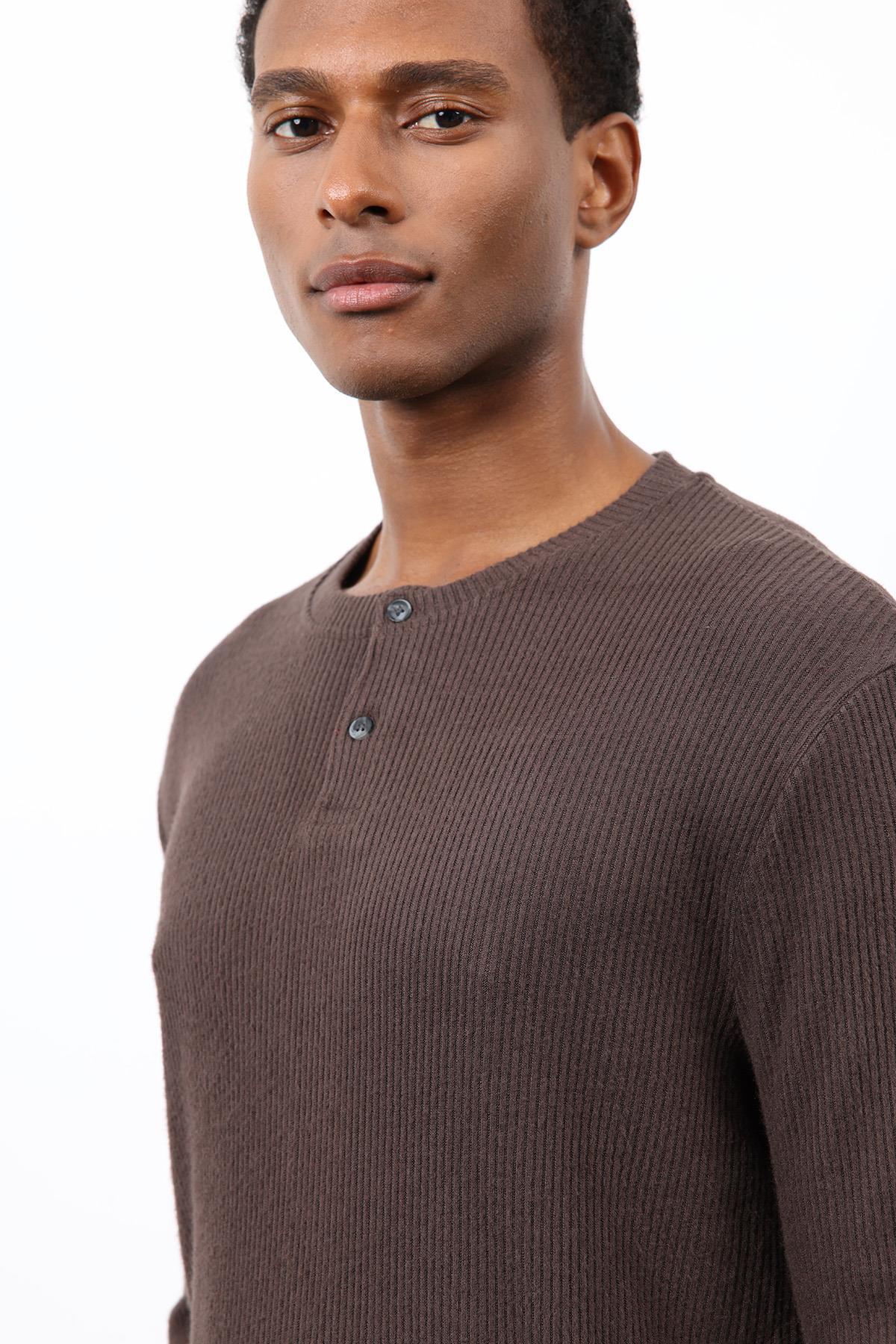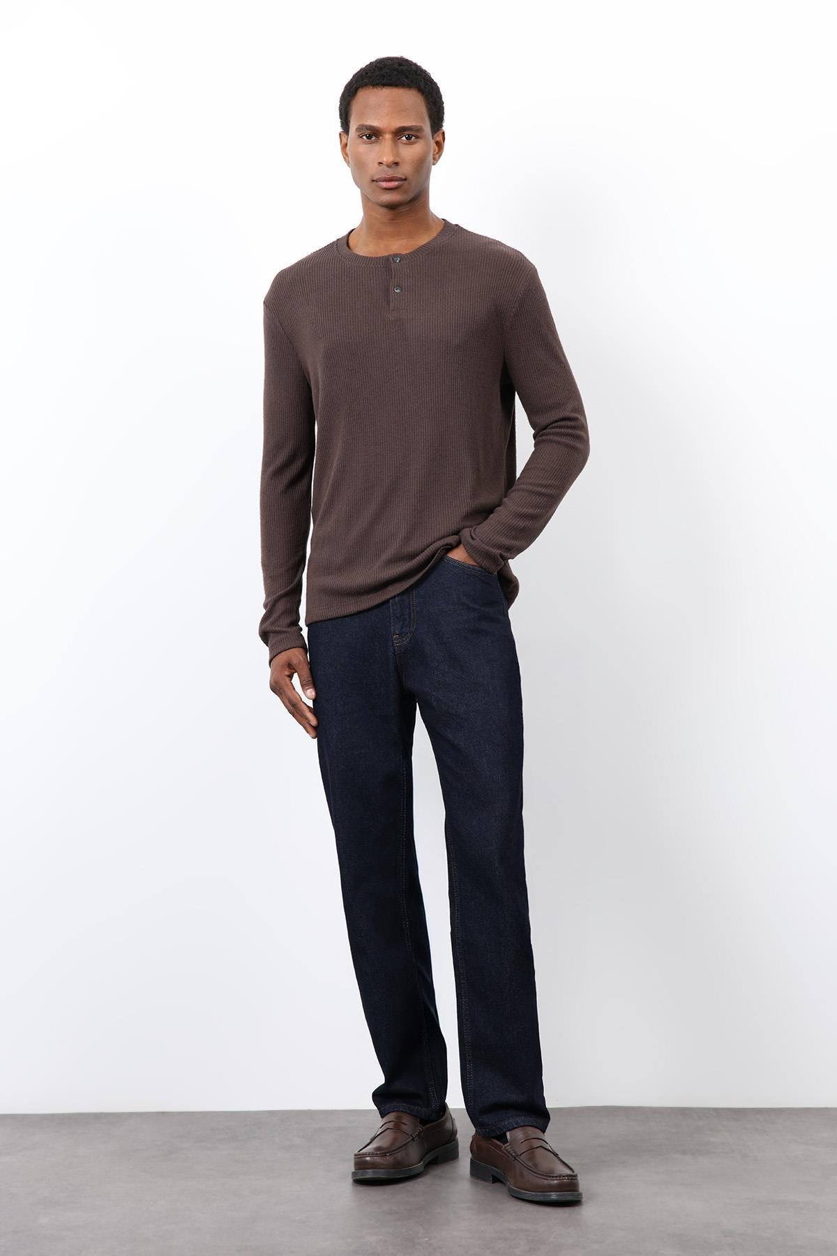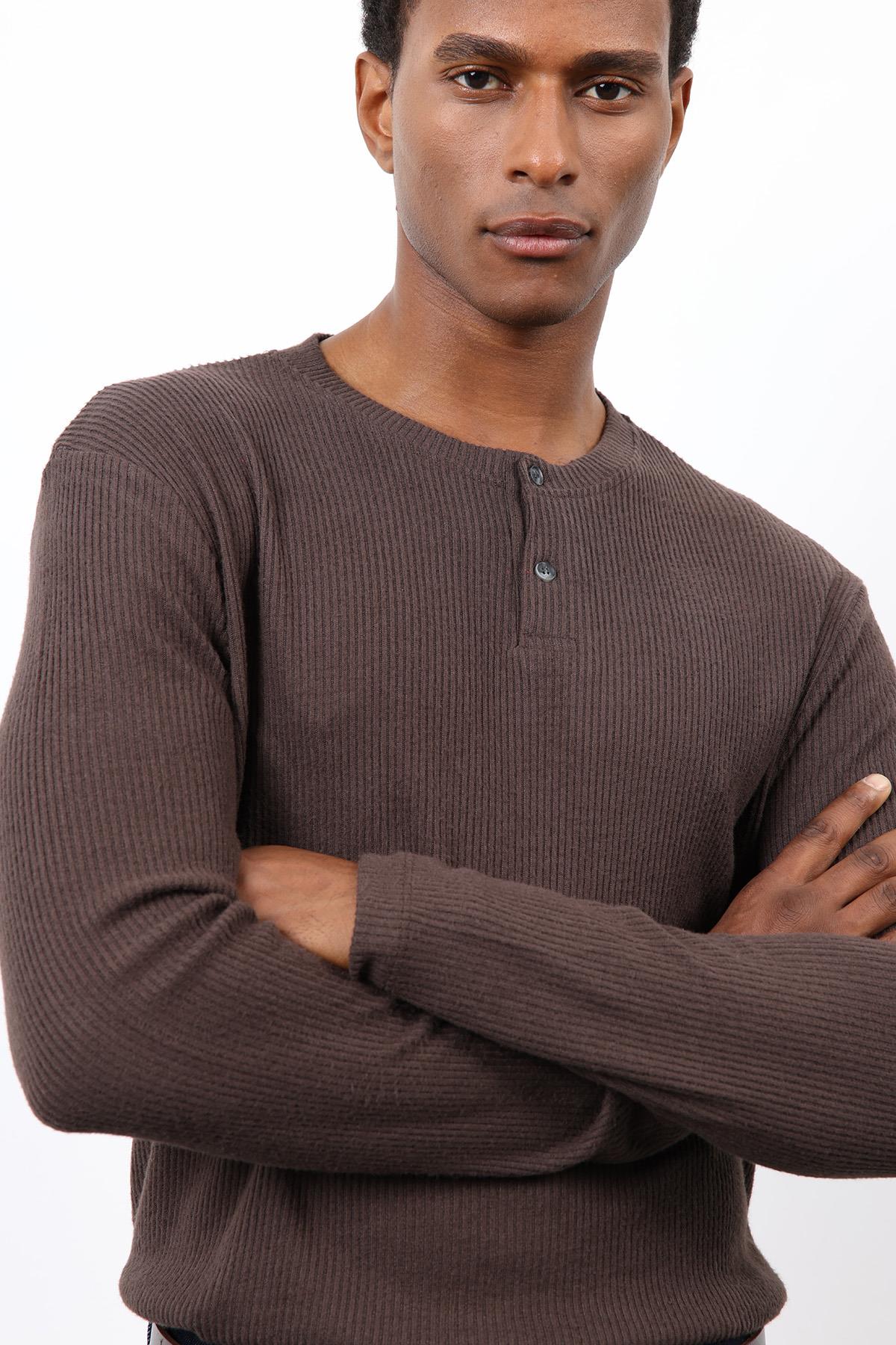 Kahve Fitilli Düğmeli Yaka T Shirt