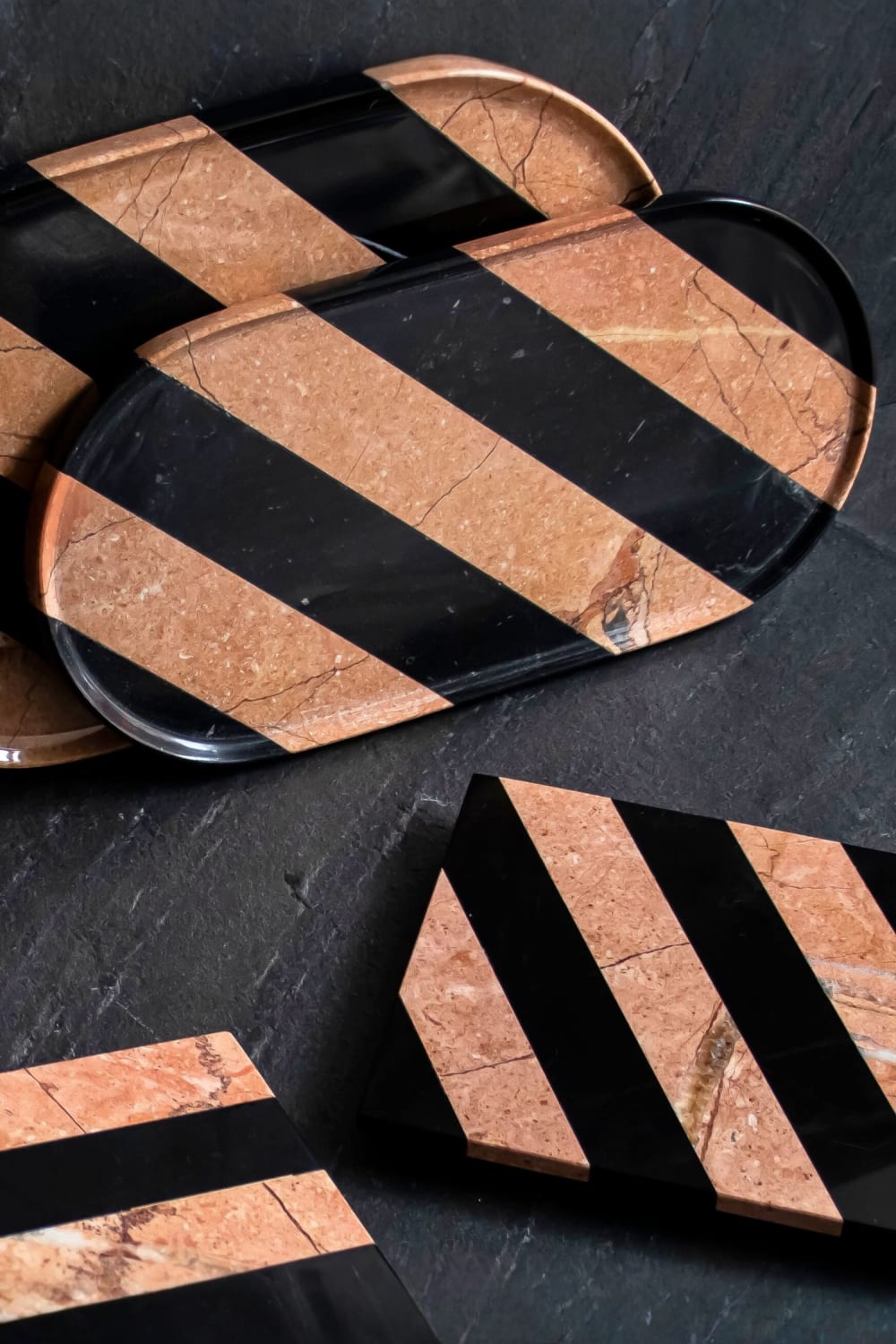 Grafik tasarımında çizgili desenlerin kullanıcılar tarafından sıklıkla tercih edildiğinin farkında olan tasarım ekibimiz, mermer parçaları bir araya getirerek Striped serisini tasarladı. Bu sezonun favori renkleri pembe ve siyah mermerler kullanıldı. Striped koleksiyonumuz her sezon yeni renk kombinleri ile çeşitlenecek.