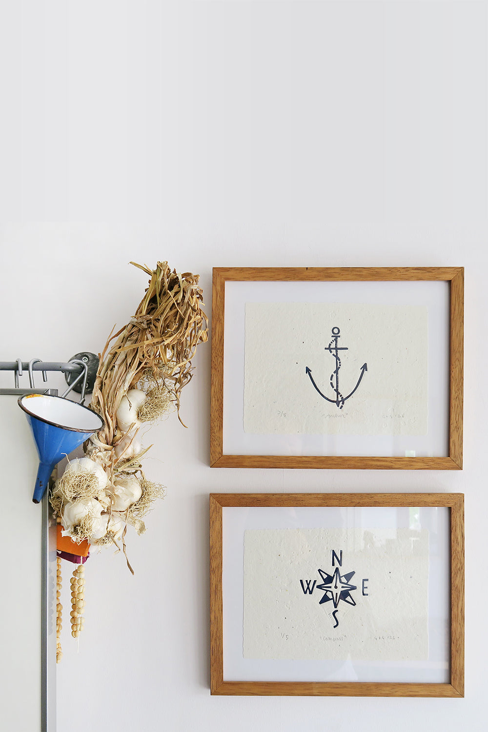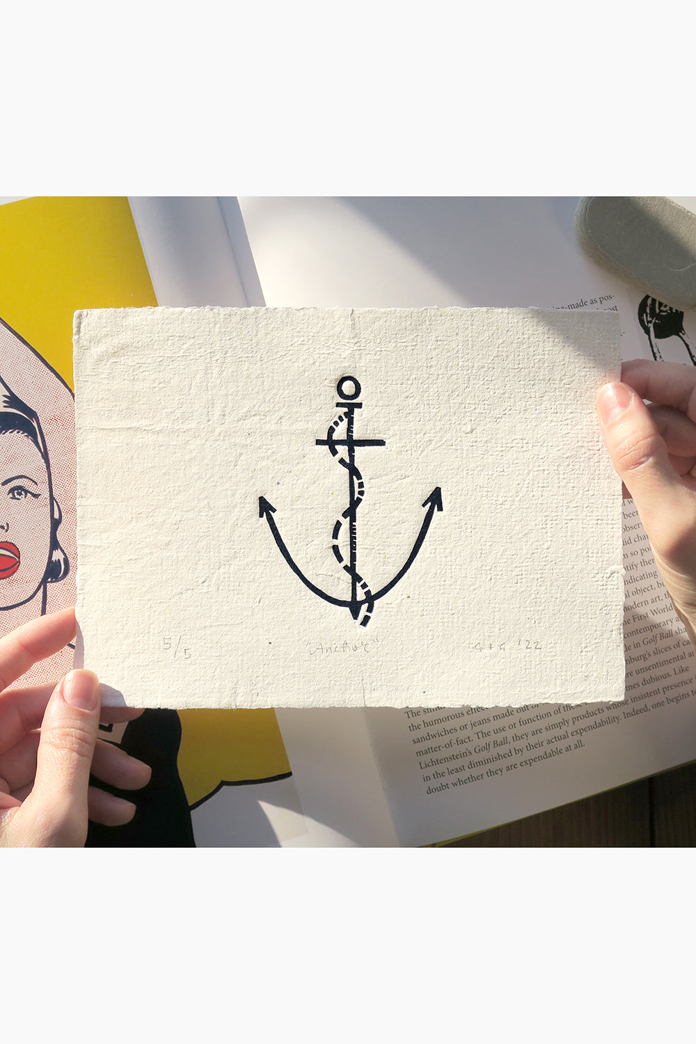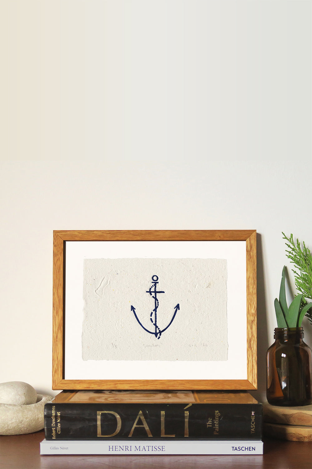 Deniz temalı sanat eserlerini sevenler için, Marine serimizden "Anchor" linol baskı.